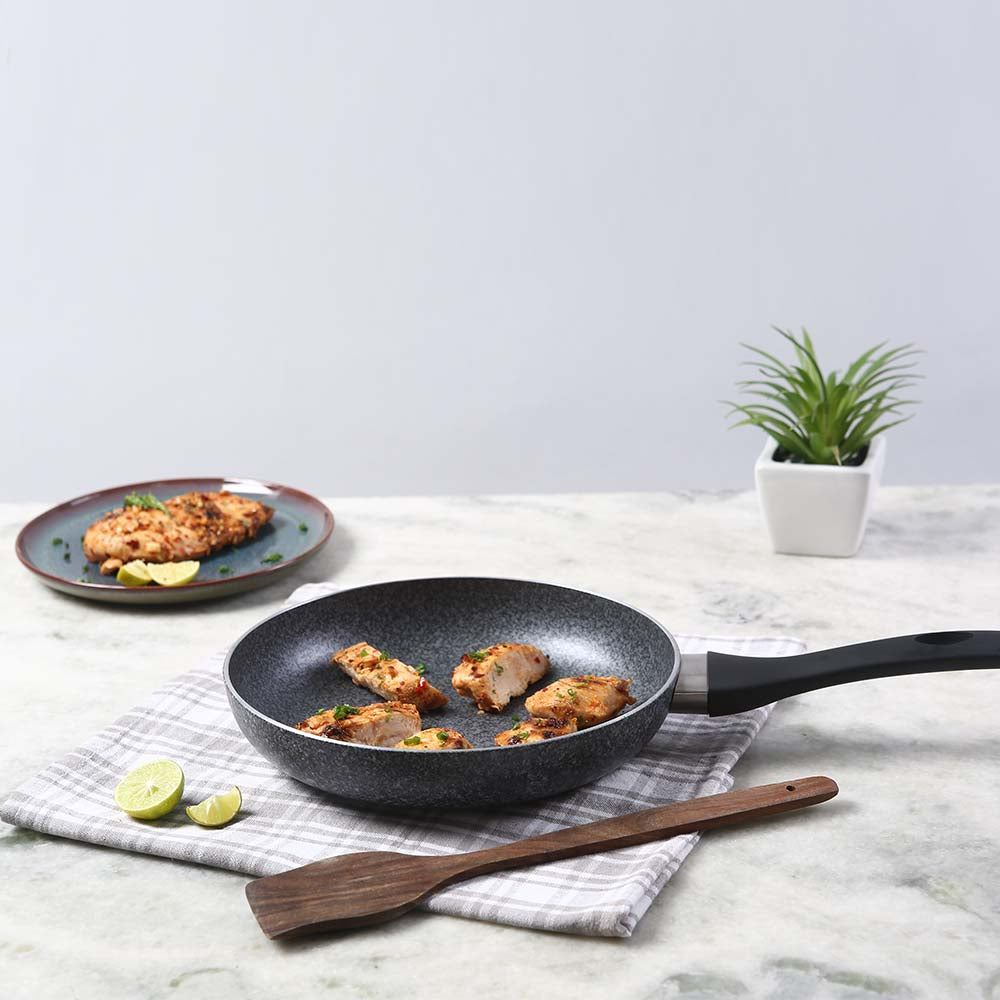 Make a fashion statement with this stunning fry pan in grey stone finish. Time to make cooking a stylish affair.