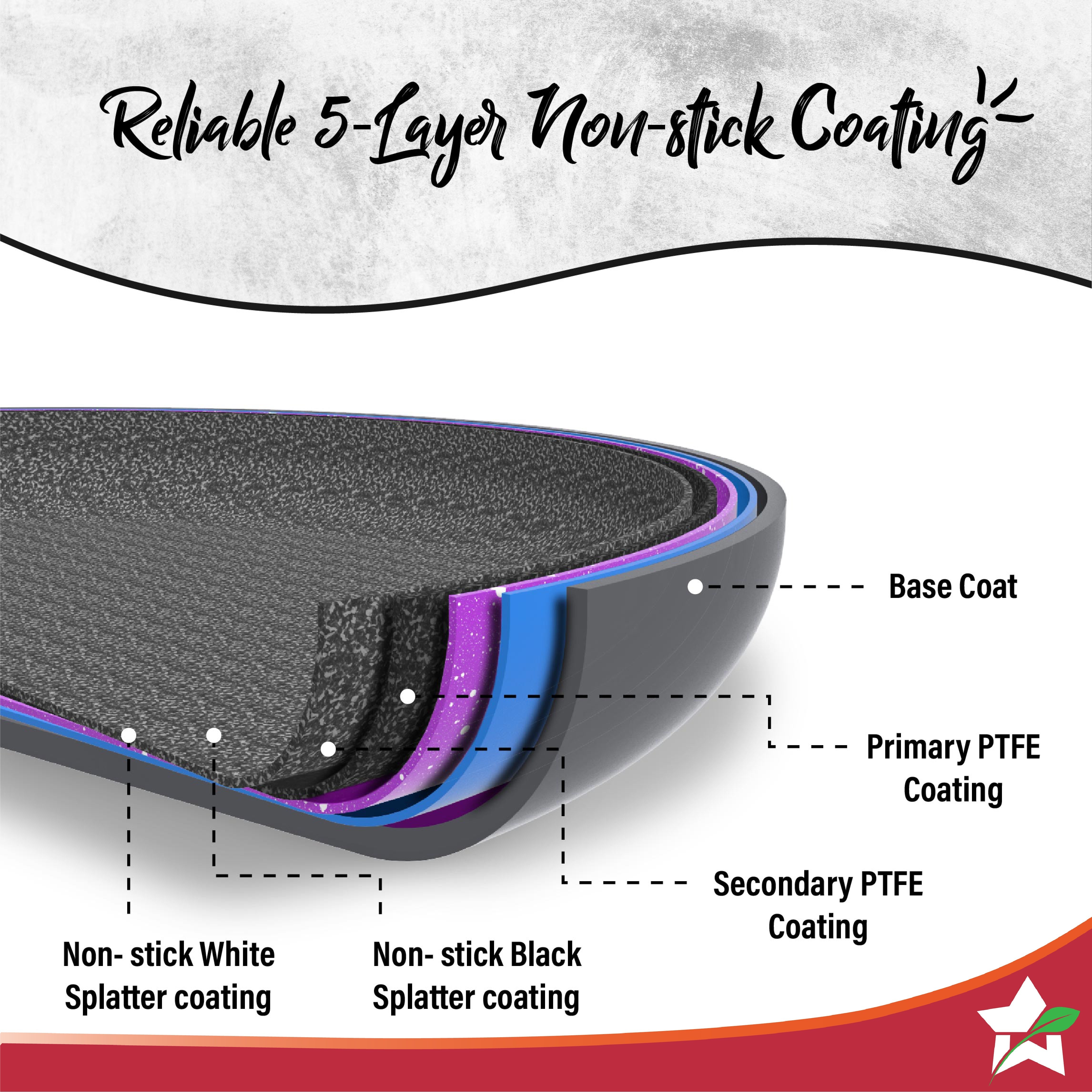 - The 5-layer non-stick coating is abrasion resistant and has excellent durability and food release properties for a smooth cooking experience