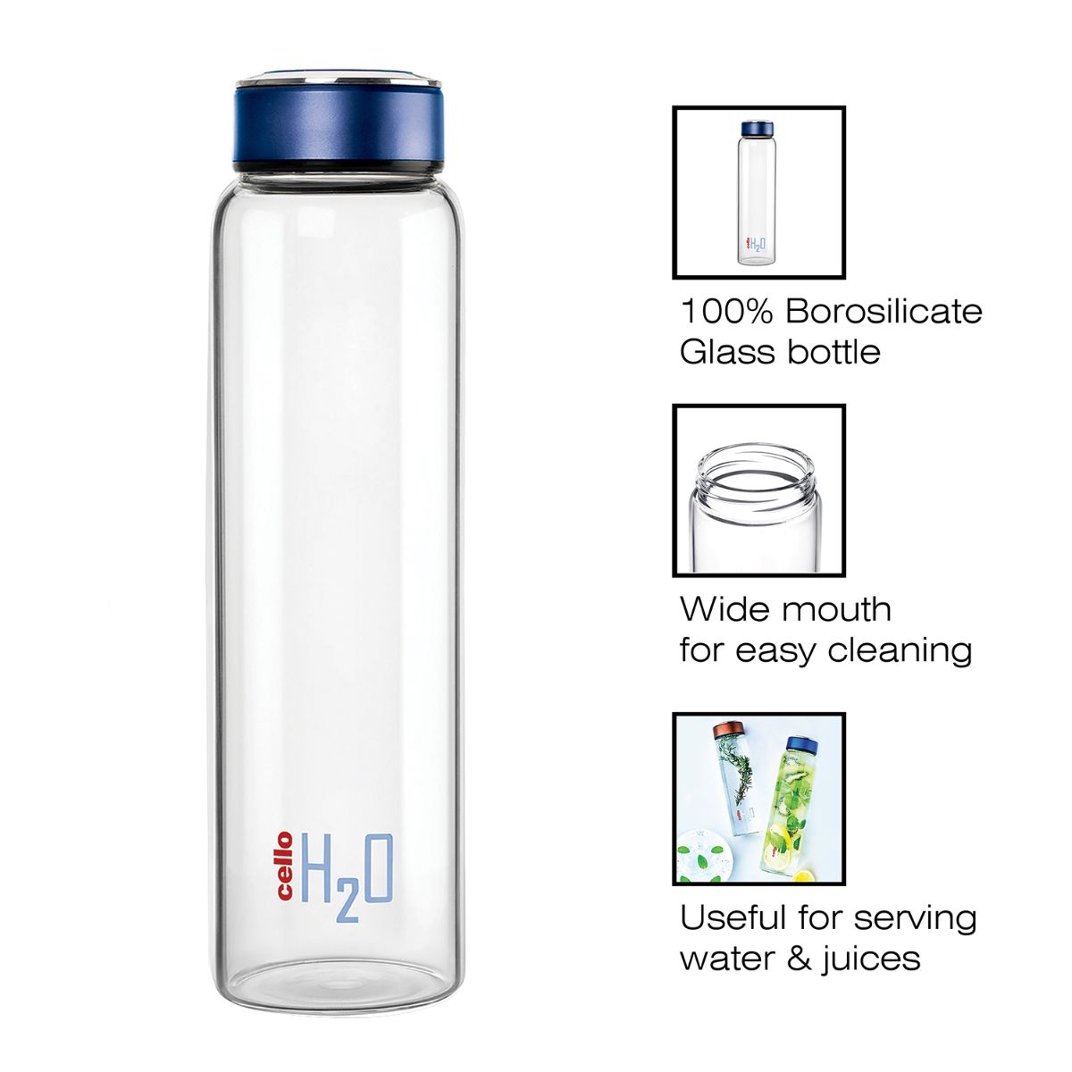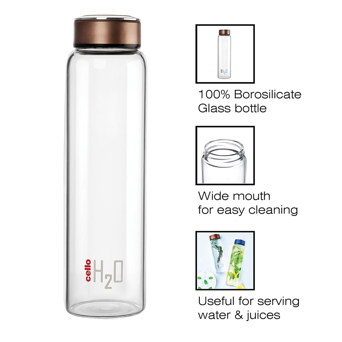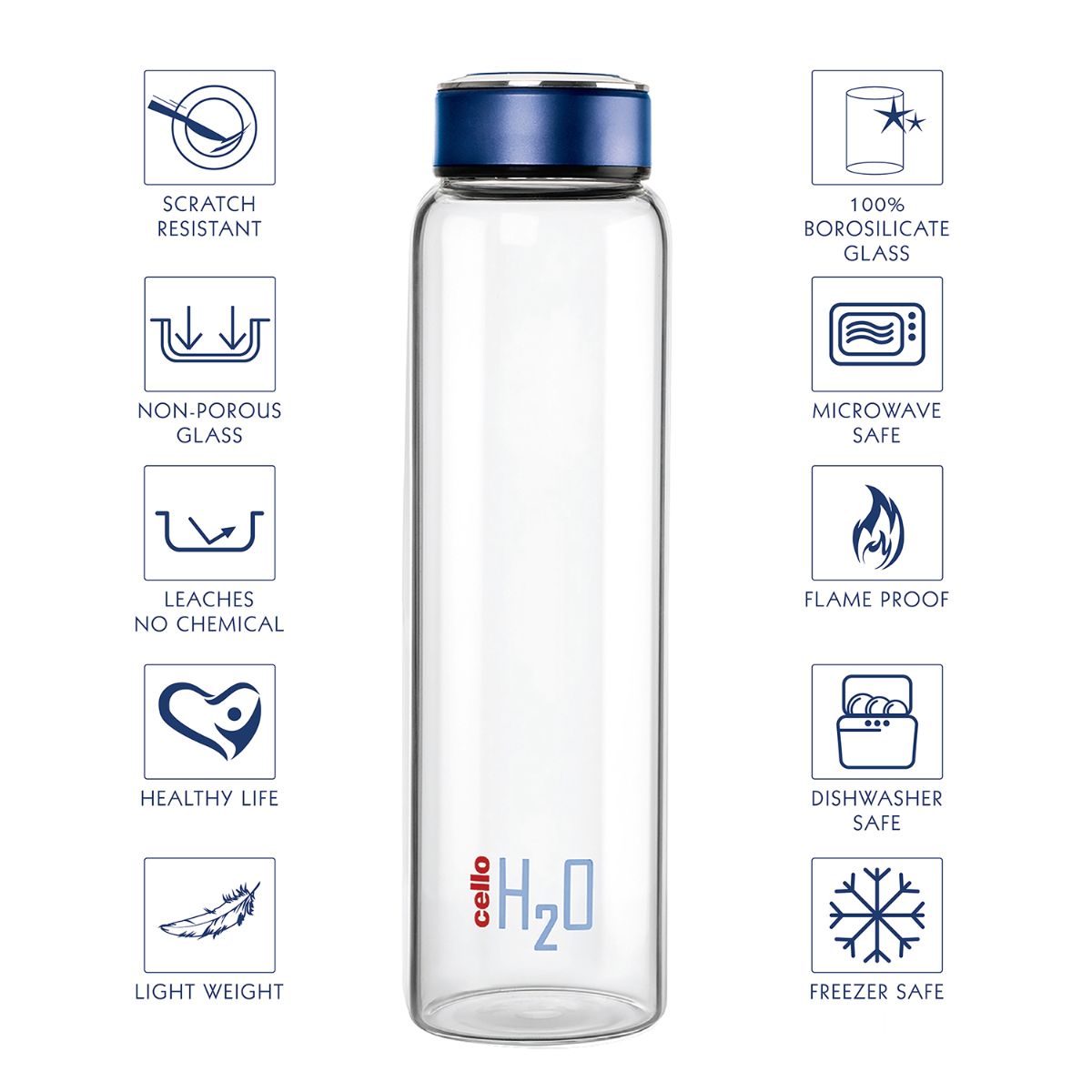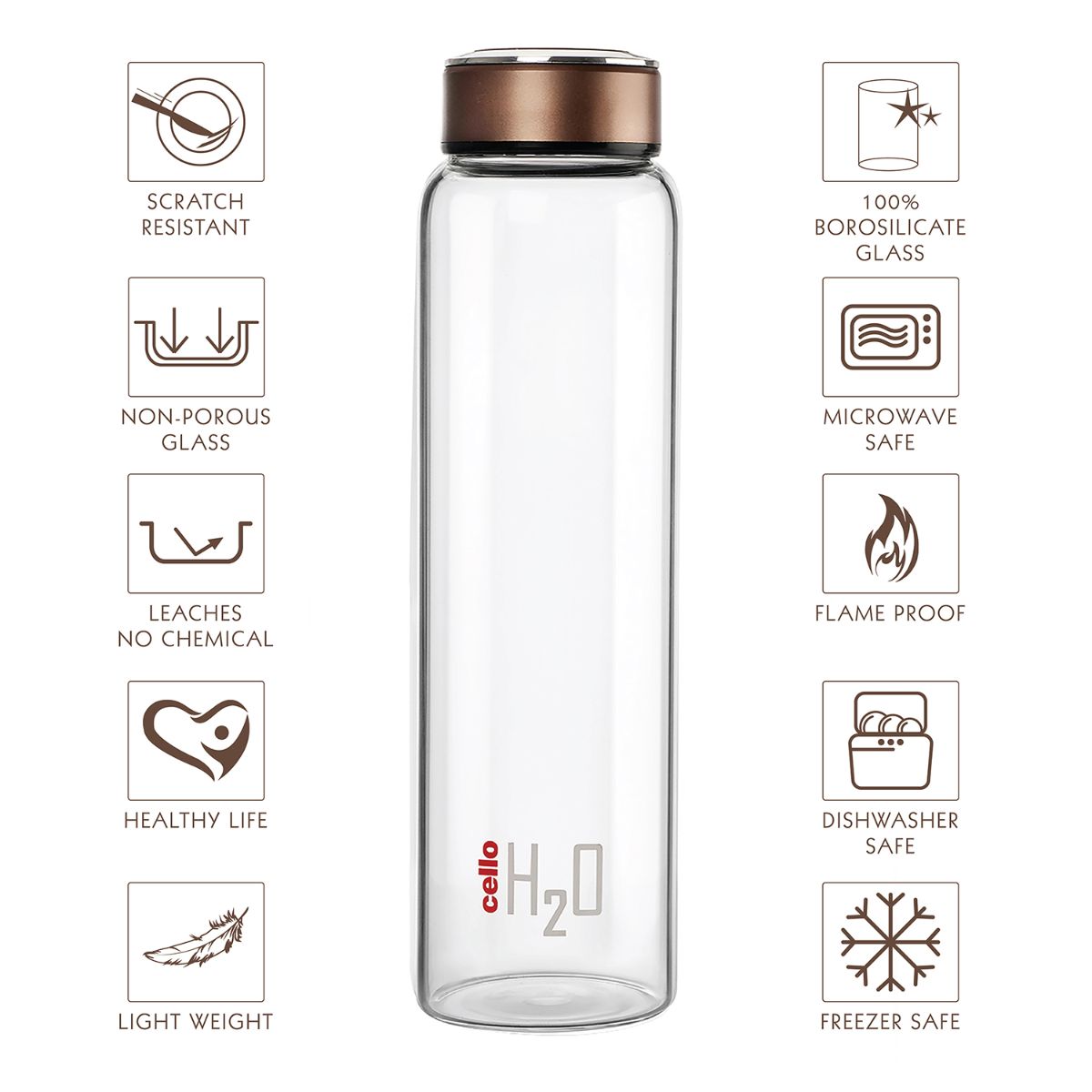 - Cello’s borosilicate crystal clear glass bottle is 100% toxin-free, providing a safe alternative to plastic bottles and assuring no leaching of harmful chemicals into your drink.