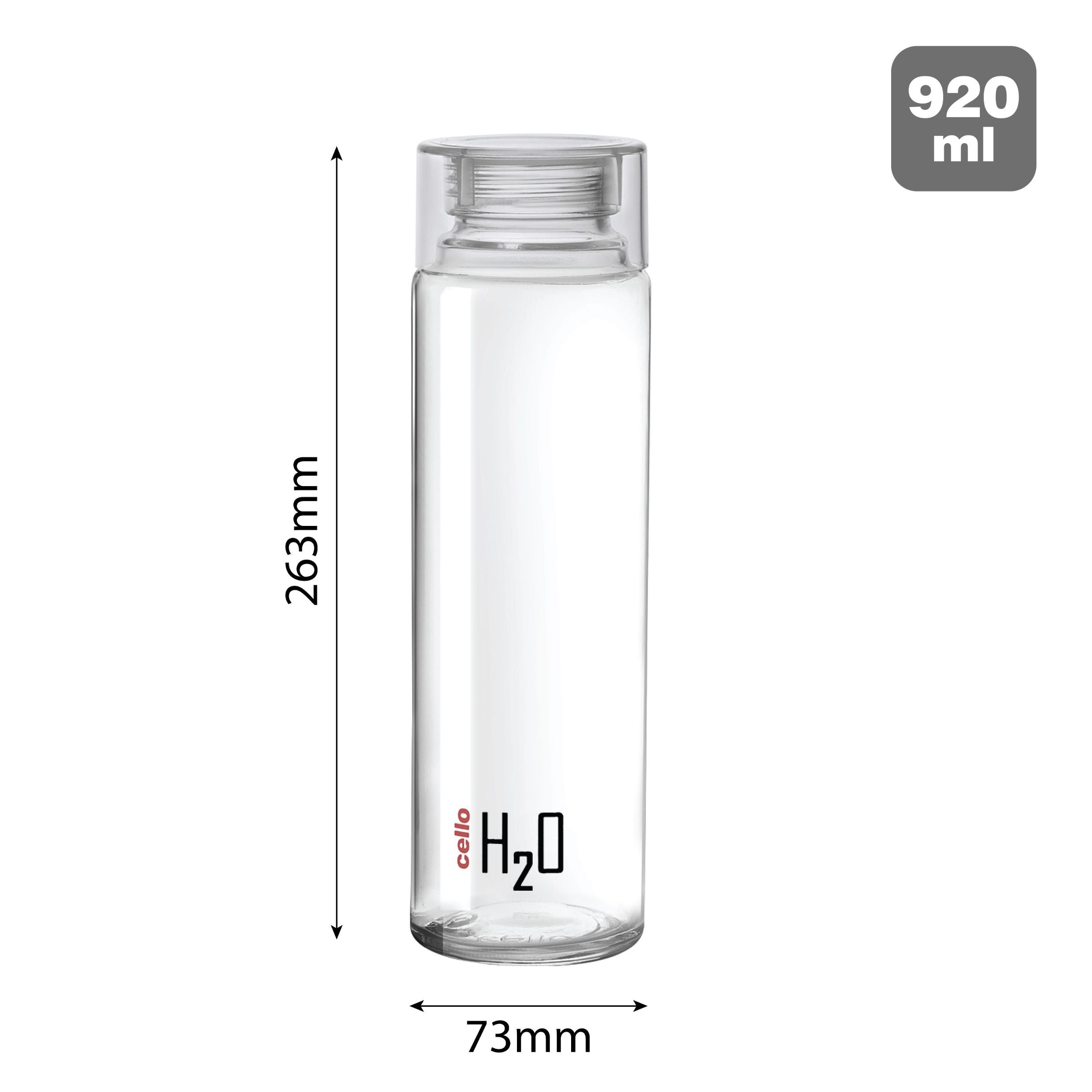 - The H2O Glass Water Bottle, available in 920ml, offers flexibility with pack sizes (1 Piece, 3 Pieces, and 6 Pieces) and comes in stylish colors like Black, Blue, Clear, and Red, catering to various preferences and needs.