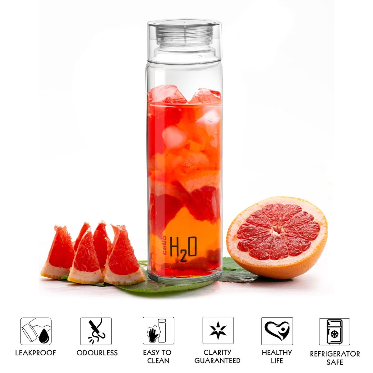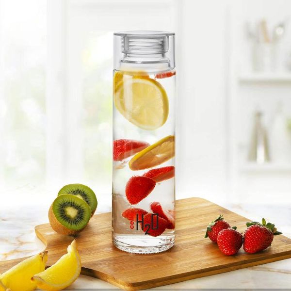 - The Cello H2O Glass Water Bottle is meticulously crafted from 100% food-grade sodalime glass, ensuring unparalleled clarity and safety for your beverages.