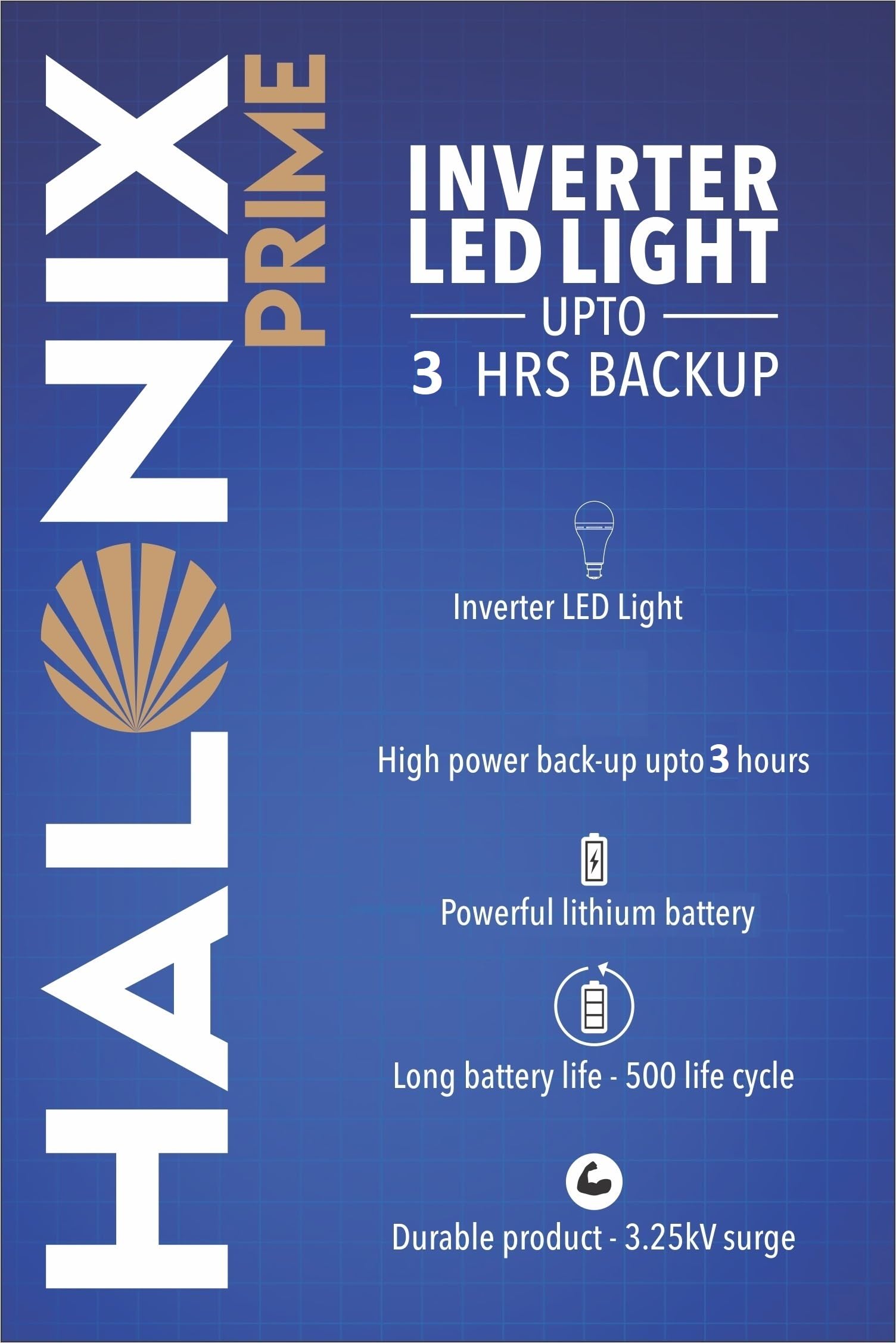 Details: Halonix rechargeable Inverter emergency bulb, which promises up to 2-3 hours of continuous lighting backup during power cuts. A perfect Rechargeable emergency light led bulb