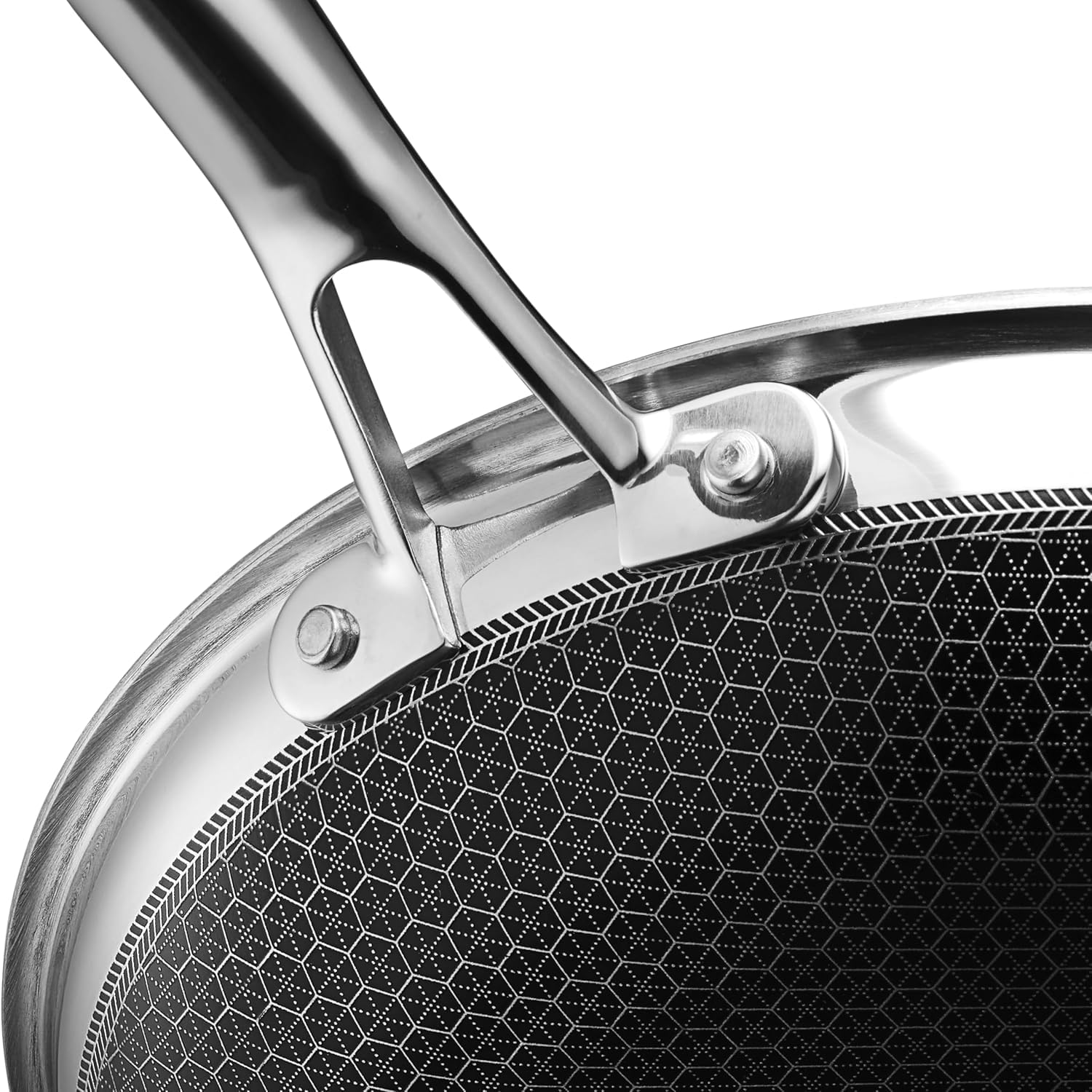 - Omni-Heat: NON-STICK & EASY TO CLEAN : Stainless steel pancake pan combines honeycomb protrusion technology with a full-coverage non-stick coating that excels in non-stick cooking and cleaning. Food won’t stick to the bottom of the pan while cooking and is easy to clean after use. Quick and uniform heat distribution with no hotspots for quick and healthy cooking.