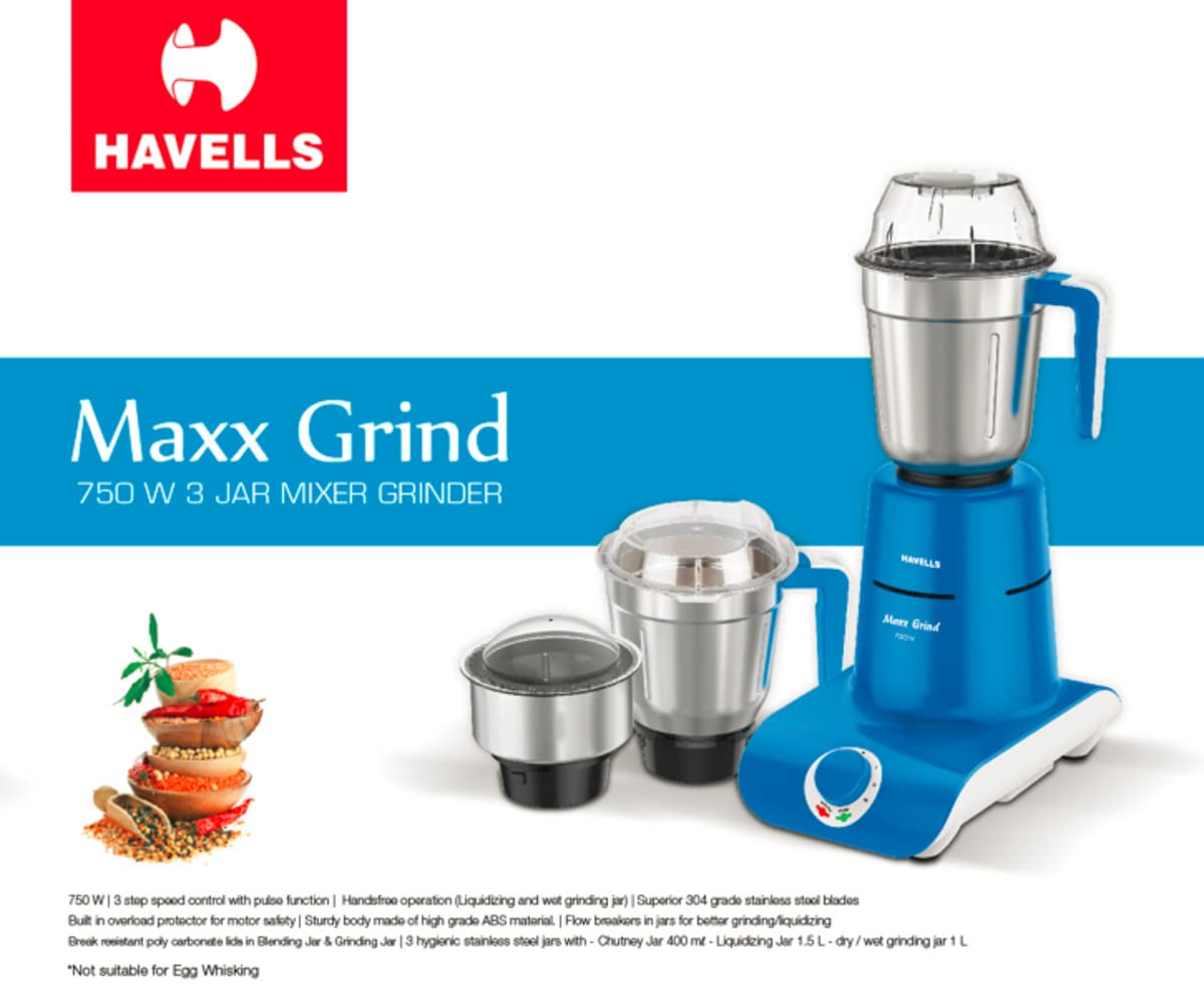 - Havells mixer grinder has 750 watts copper winded motors which lead to longer life of motor and superior performance