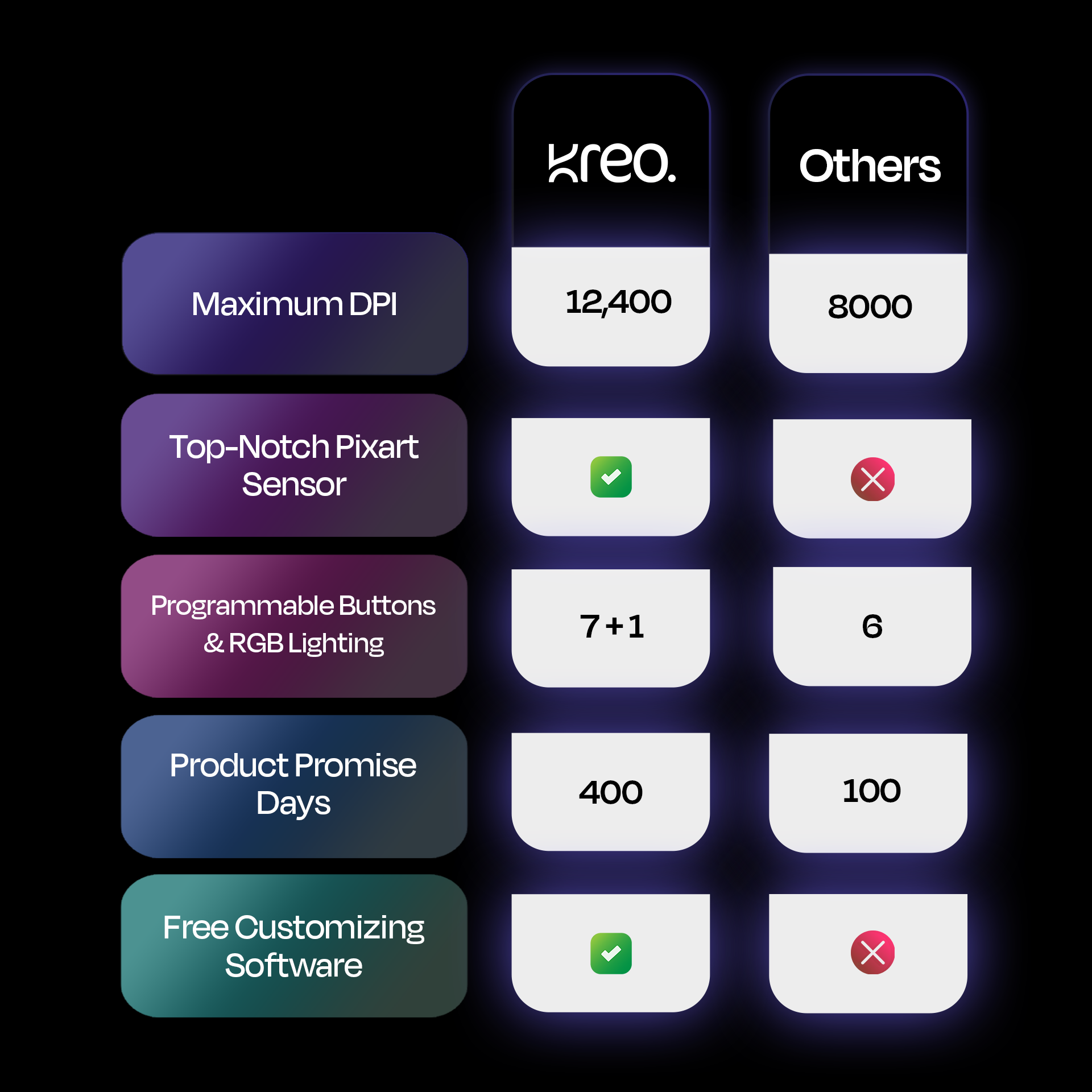 Adjustable DPI: DPI levels from 1200 – 12400K