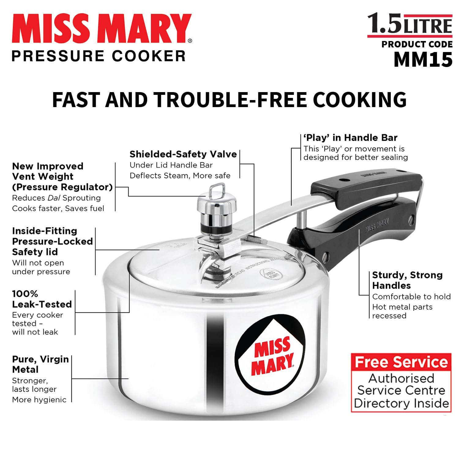 Details: Miss mary is a well-made and reliable pressure cooker that will not leak. Please note that this model is only available in india.surfaceabsorb heat more efficiently.
