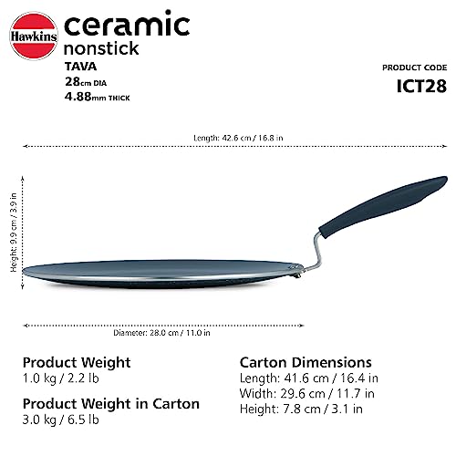 Details: The new Hawkins Ceramic Nonstick cookware offers several benefits for cooking delicious and healthy dishes. Here are its key features: Excellent release properties: The ceramic nonstick interior ensures that food doesn’t stick to the surface, making it easier to cook and clean up. Uses 36% less oil: With the nonstick properties of the ceramic coating, you can cook with less oil or butter, reducing the overall fat content of your dishes while still maintaining flavor. Heat resistance: The cookware is designed to withstand high heat without getting spoiled, allowing you to cook at higher temperatures for achieving crispier and tastier results. Free from harmful substances: The Hawkins Ceramic Nonstick cookware is free from PTFE, PFOA, PFAS, and heavy metals, ensuring a healthier cooking experience. The ceramic-based nonstick coating provides a more hygienic cooking surface. It is compliant with Council of Europe Resolution CM/RES(2013)g on metals and alloys used in food contact materials and articles. German Ceramic quality: The cookware is made with high-quality German Ceramic, which ensures durability and longevity, making it a reliable option for your kitchen. Attractive scratch and stain-resistant exterior: The ceramic coating on the outside of the cookware is scratch and stain-resistant, maintaining its appearance and looking new for years. Extra-thick construction: The cookware is built with a thickness of 4.88 mm, promoting fast and even heat distribution, allowing for precise cooking results. Sturdy stay-cool silicone handle: The cookware features a sturdy handle made of stay-cool silicone, providing a comfortable grip and ensuring safety while cooking. 5-year guarantee: The Hawkins Ceramic Nonstick cookware comes with a 5-year guarantee, providing assurance of its quality and performance. Overall, the Hawkins Ceramic Nonstick cookware offers a combination of excellent cooking performance, health-conscious features, durability, and aesthetic appeal, making it a desirable choice for those seeking a reliable and versatile cookware.