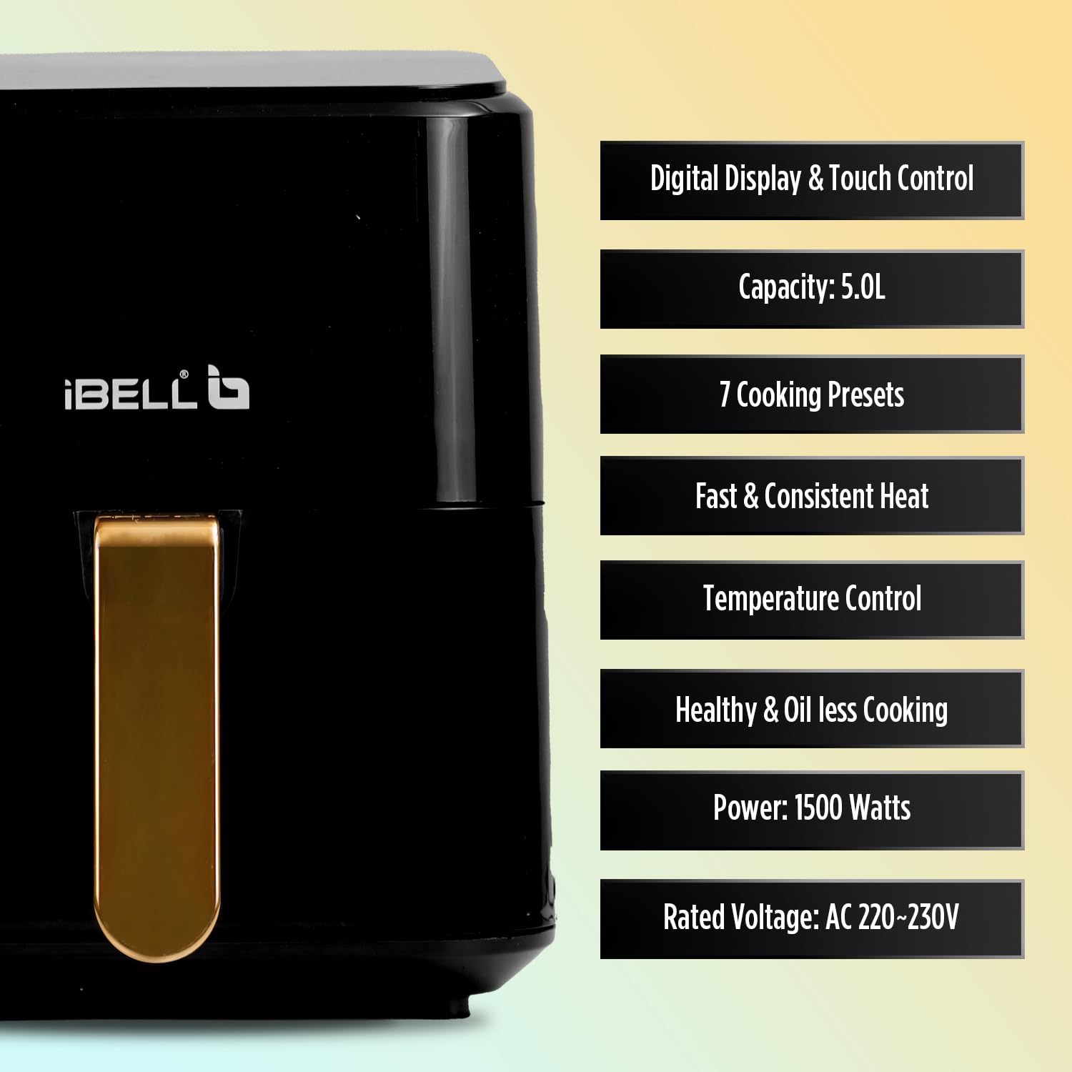 - iBELL Premium Air Fryer with 5 Litre capacity and 7 Presets