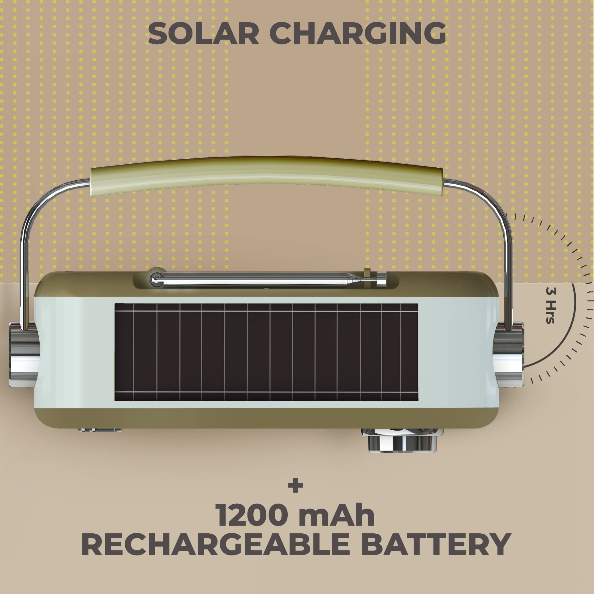 - 【Solar charging + Rechargeable battery】Evoke Radio + Mp3 player is equipped with a solar charging panel, so you never have to worry about it charging multiple times. It also has a 1200 mAh rechargeable battery