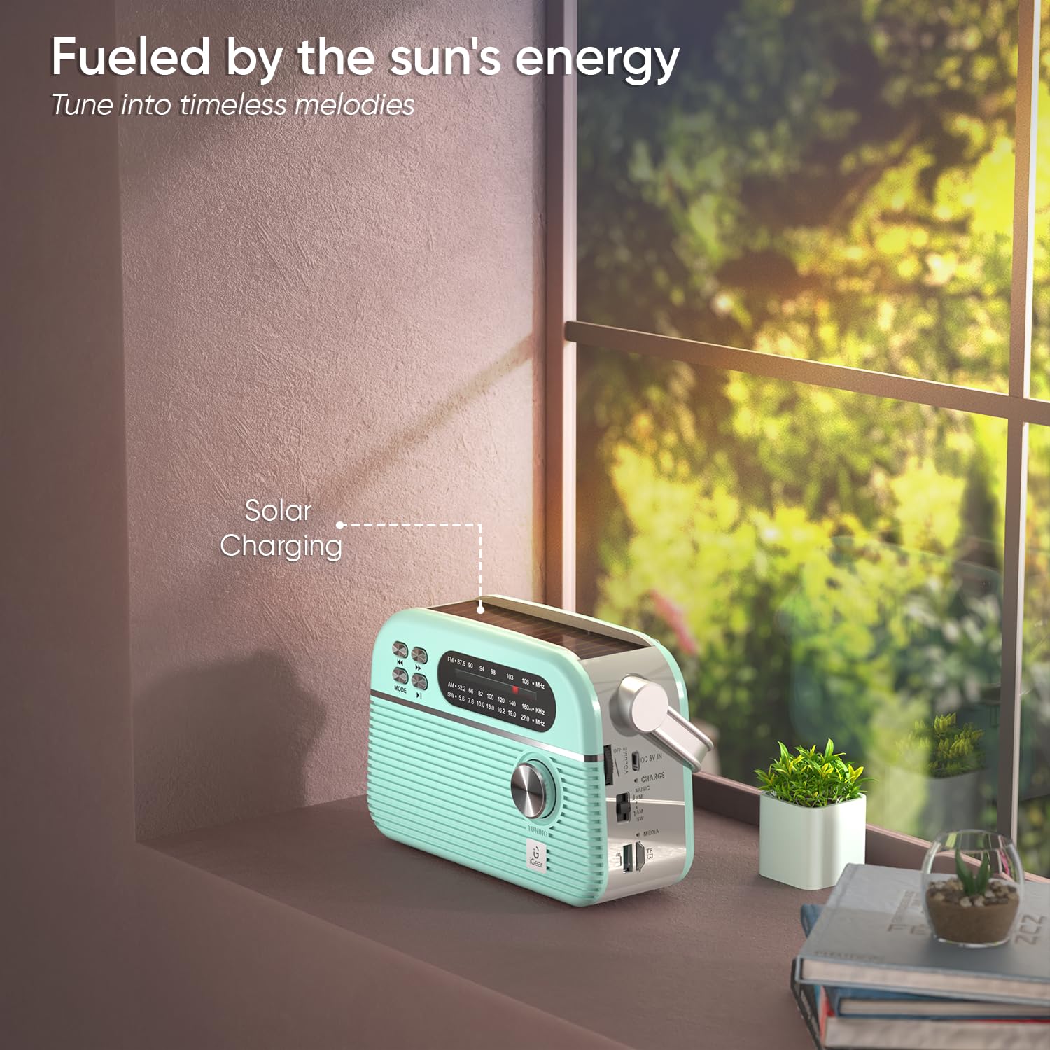 - [Solar charging + Rechargeable battery] Trinity Radio + Mp3 player is equipped with a solar charging panel, so you never have to worry about it charging multiple times. It also has a rechargeable battery