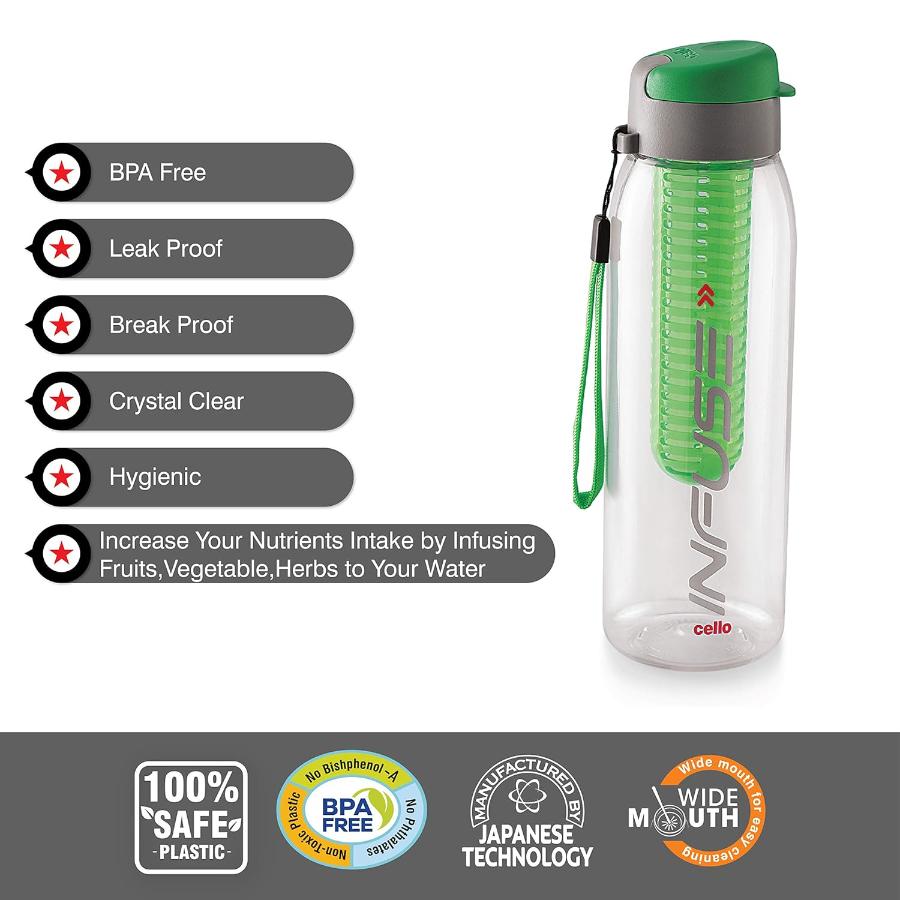 Made of high quality BPA free, food grade plastic the Cello Infuse bottle is perfect for a multitude of reasons. Store fruit infused water, keep it handy or simply carry it with you while on the go. The Infuse bottle are made to be compact and completely leakproof too!