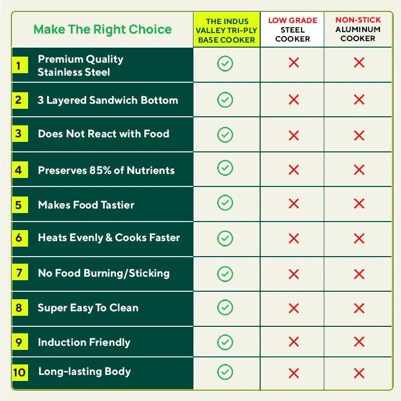 Be it is 3 liter or 5 liter steel cooker price, The Indus Valley cooker price is reasonable in comparison to its various benefits. Buy pressure cooker from The Indus Valley and make your cooking very effortless.