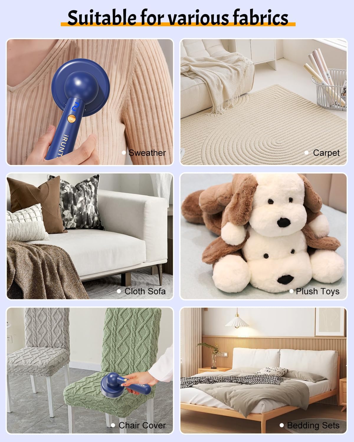 - 🔃 𝟯 𝗦𝗽𝗲𝗲𝗱𝘀 & 𝗙𝗶𝘁𝘀 𝗠𝗼𝘀𝘁 𝗙𝗮𝗯𝗿𝗶𝗰: Multi-Speed Selection: Fabric shaver features three adjustable speeds, allowing you to choose the right setting for different types of fabrics. It’s suitable for a wide range of fabric materials. It safely and efficiently removes fuzz, pills, and lint from scarves, sweaters, socks, blankets, curtains, plush toys, cushions, carpets, furniture, sofa, and more.