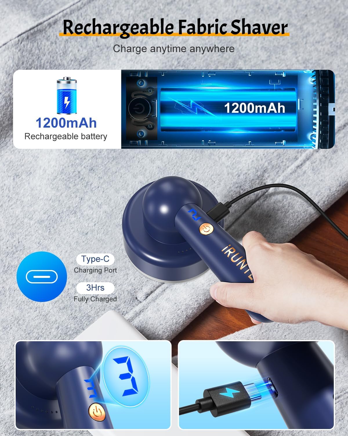 - 🔋𝗥𝗲𝗰𝗵𝗮𝗿𝗴𝗲𝗮𝗯𝗹𝗲 & 𝗟𝗘𝗗 𝗗𝗶𝗴𝗶𝘁𝗮𝗹 𝗗𝗶𝘀𝗽𝗹𝗮𝘆: The high-definition screen of the lint remover will display the remaining battery power, speed levels. Lint remover features a built-in 1200mAh rechargeable battery that can deliver up to 2-4 hours of use on 3 hours of charging, eliminating the need for frequent battery replacements and saving you money on battery purchases.