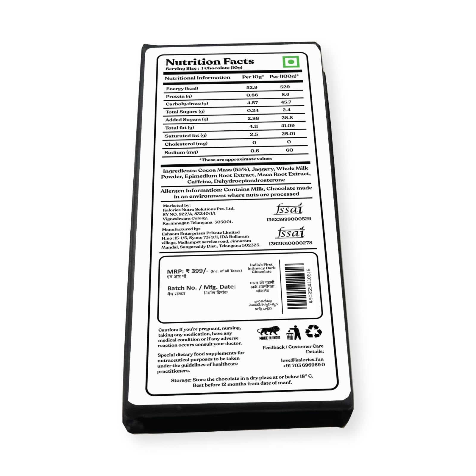 - Premium Quality Dark Chocolate: Crafted with rich cocoa, Kalories Intimacy Dark Chocolate offers a decadent, guilt-free indulgence perfect for couples.