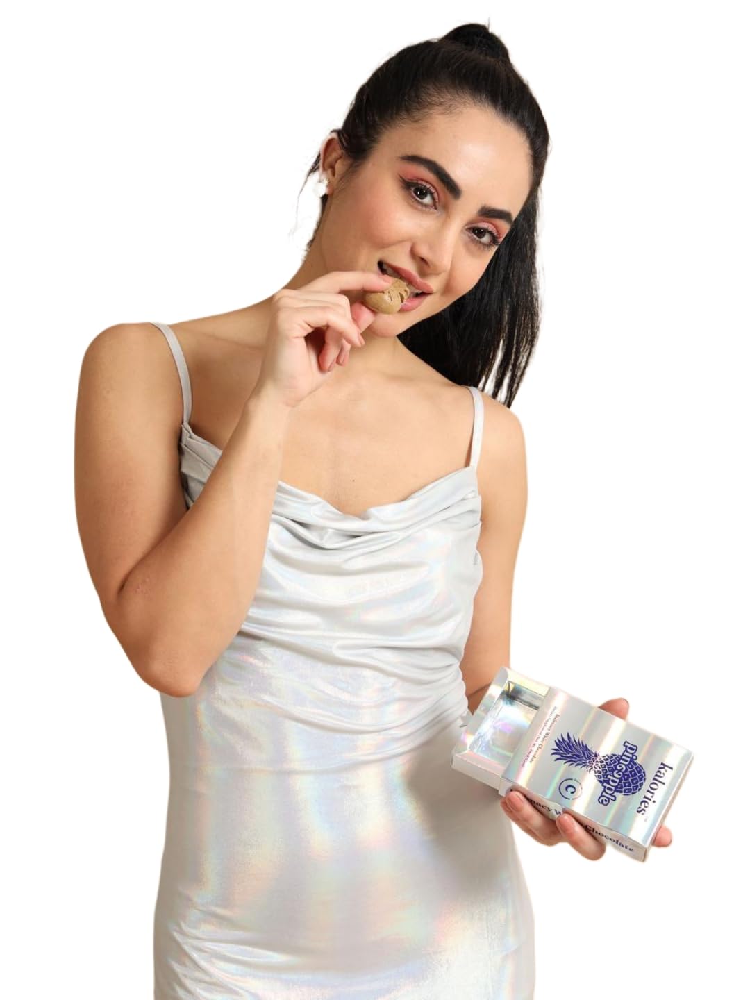 Details: White Chocolate-Dipped Pineapple with Palm Jaggery – A Luxurious Aphrodisiac Experience Awaken your senses with this exquisite blend of tropical pineapple, creamy white chocolate, and earthy palm jaggery, meticulously crafted to ignite passion, vitality, and intimate connection. Pineapple, revered for its natural aphrodisiac qualities, is rich in bromelain, a powerful enzyme known to boost testosterone and enhance circulation. Combined with the nutrient-dense richness of palm jaggery—packed with iron, magnesium, and potassium—this decadent treat not only tantalizes your taste buds but also nourishes your body and soul. ✔ Passion Unleashed – Elevates mood, energy, and intimacy with every bite. ✔ Nature’s Nutrients – A powerhouse of essential minerals to support vitality and well-being. ✔ Irresistible Indulgence – A harmonious blend of sweetness, creaminess, and tropical zest. Savor this guilt-free delight that transcends ordinary treats, offering a luxurious escape into passion and wellness. Perfect for kindling romance or simply treating yourself to a moment of pure, sensual pleasure.