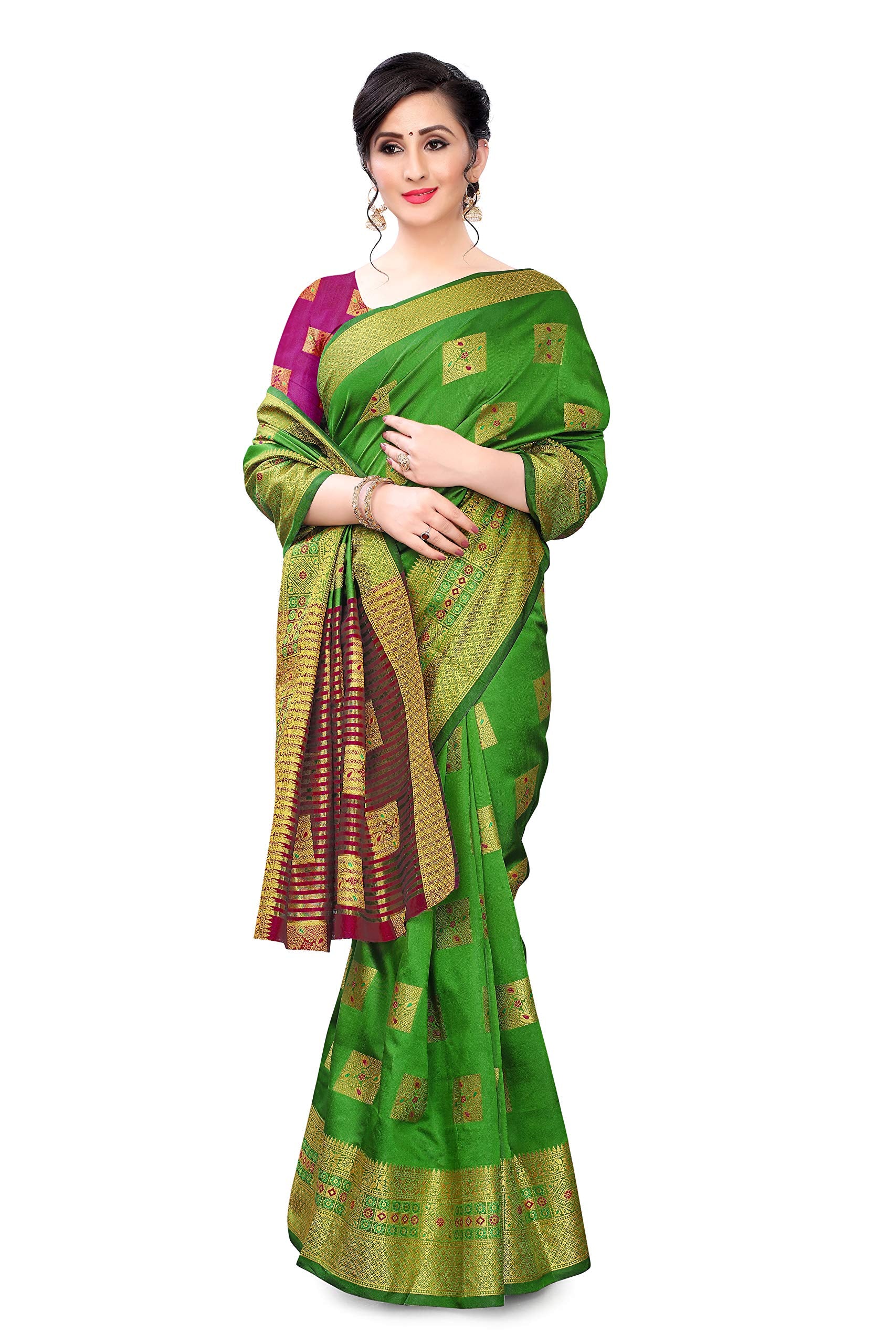 - Saree Details:- Color: Green || Material: Cotton Silk Blend || Length: 6.3 Meter (With Blouse) || Pattern: Handloom || Work Type: Zari Woven Work