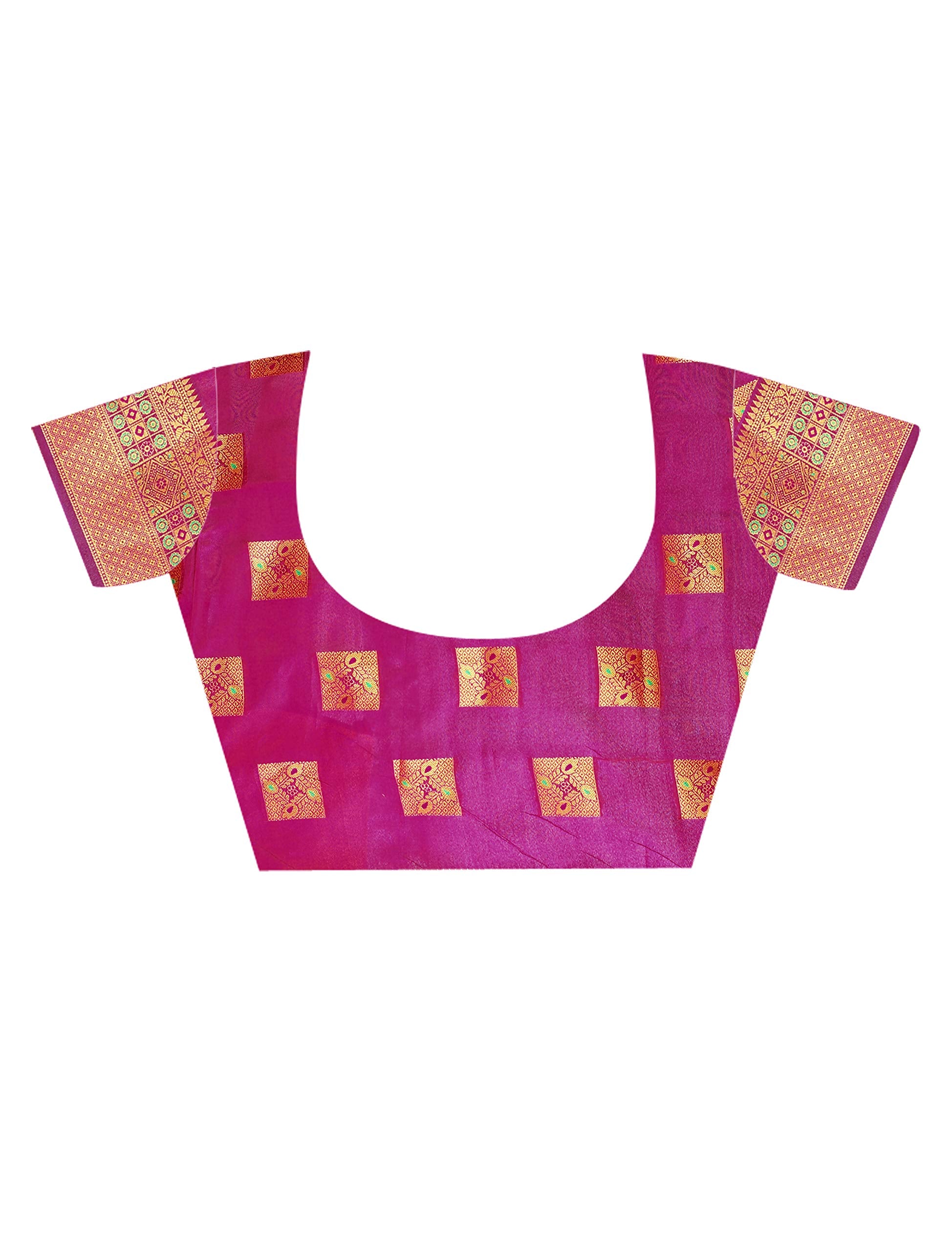 - Blouse Details:- Color: Purpal || Material: Cotton Silk Blend || Length: 0.8 Meter || Pattern: Handloom || Work Type: Zari Woven Work