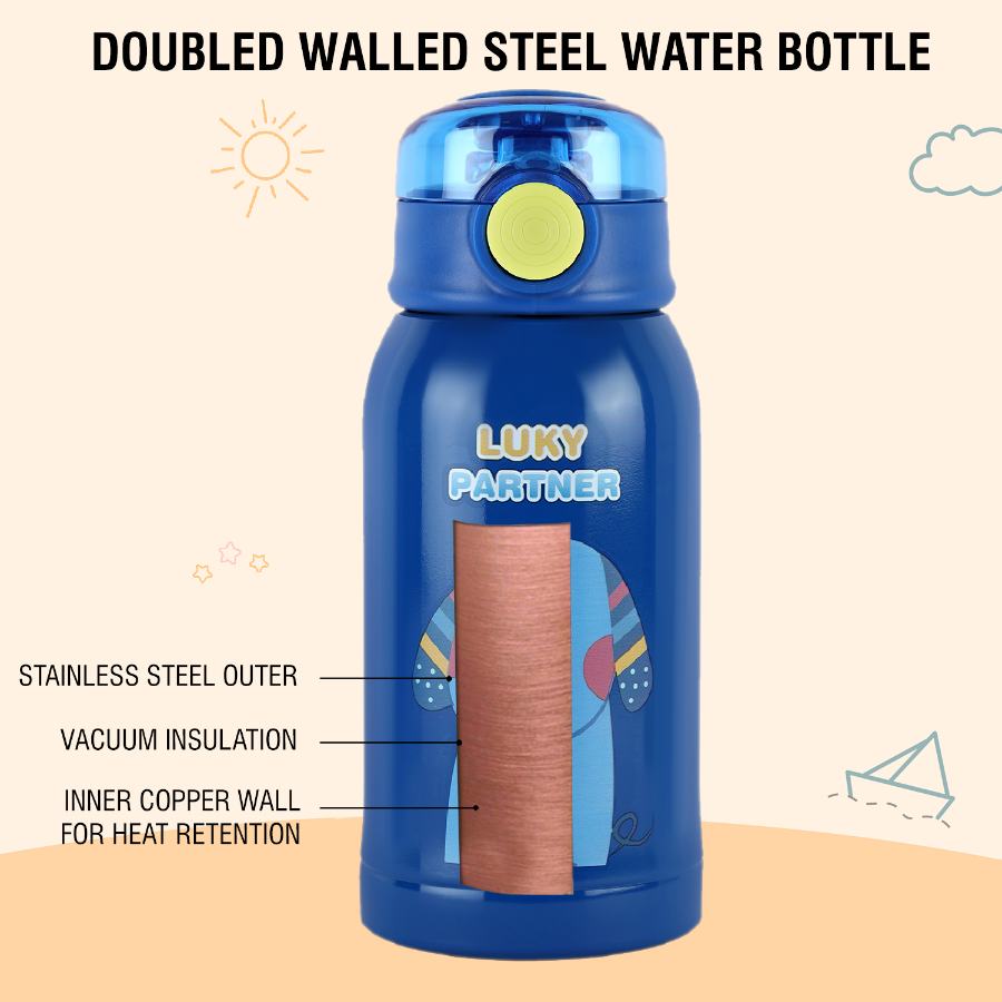 Introducing “Kinder” by Cello Kidzbee, the perfect water bottle for school-going kids! Available in fun colors like Blue, Pink, Orange, and Purple, Kinder features adorable animal designs that your little one will love. Its 500ml capacity is ideal for staying hydrated throughout the day. Designed with kids in mind, Kinder comes with a matching jacket, complete with a flat, wide adjustable neck strap that won’t hurt their necks. Plus, it’s slim enough to fit into any school backpack without the jacket.