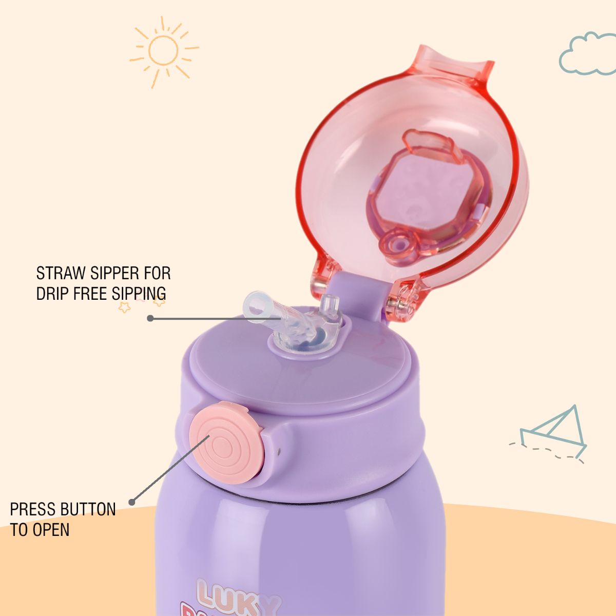 - One-touch push-button, secure lock, and leak-proof design make Kinder a parent’s favorite and a kid’s best companion.