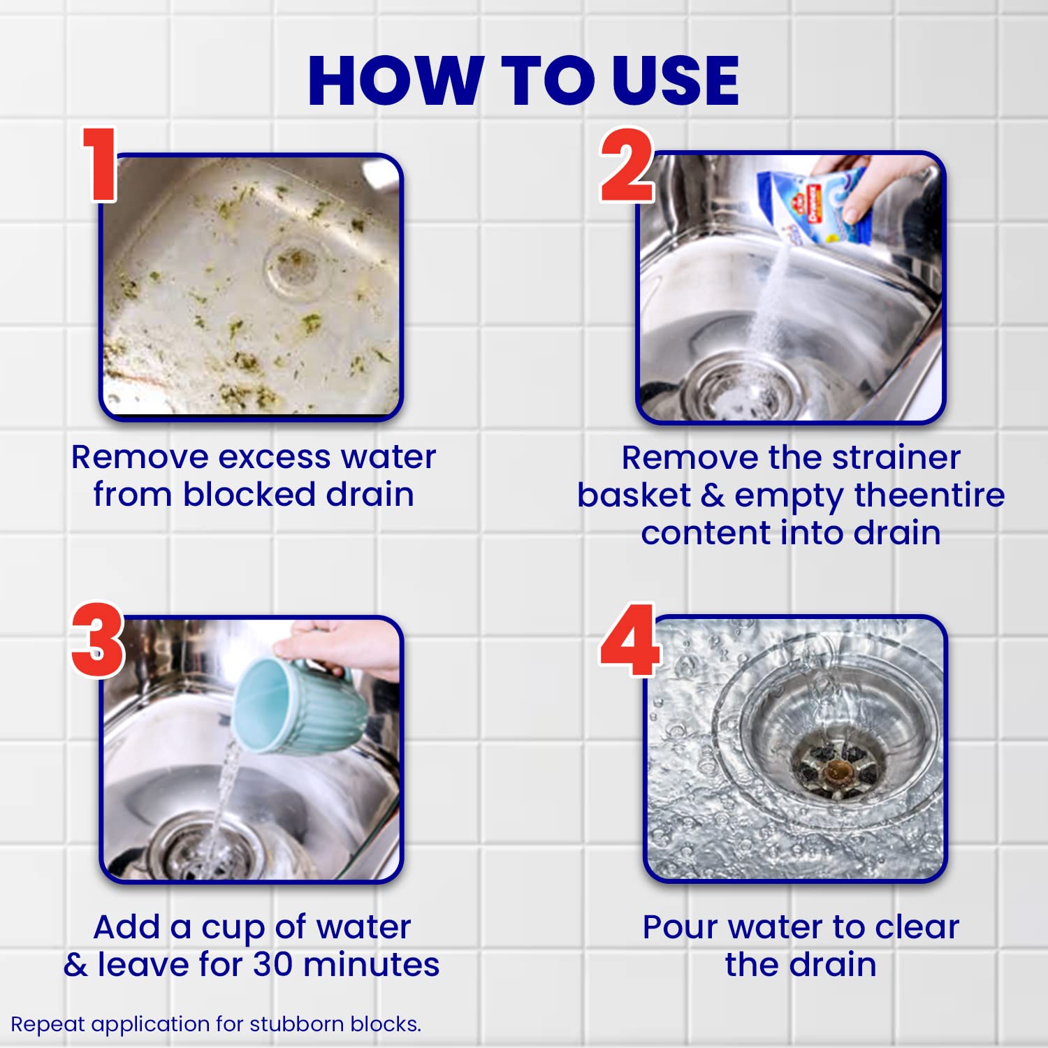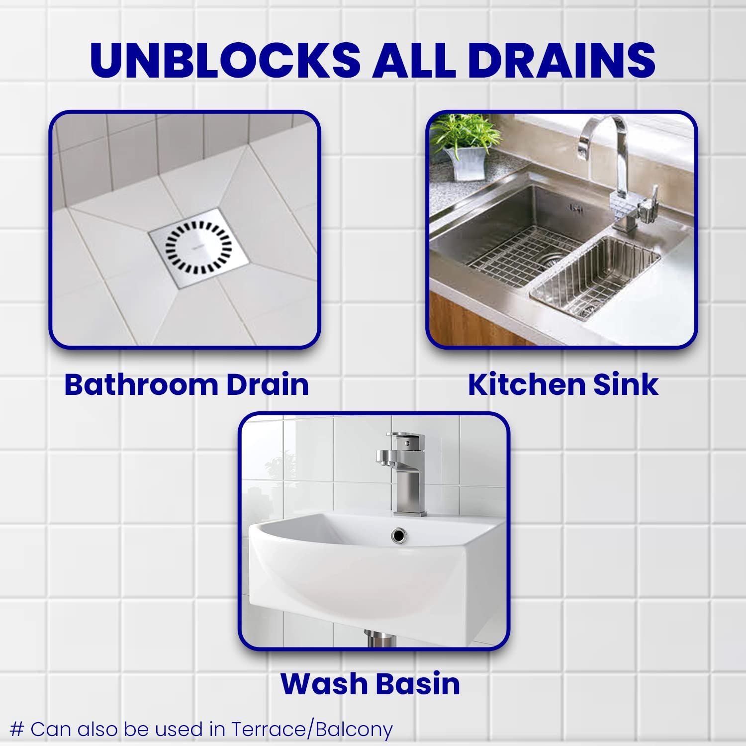 - Heavy duty drain cleaner, effectively cleans blockage in the pipes of washbasins and sinks