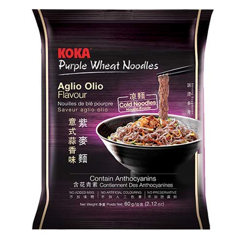 Details: Rich in Antioxidants KOKA Purple Wheat Noodles’ luscious hue is due to the presence of anthocyanins naturally found in purple corn. In addition, KOKA Purple Wheat Noodles are made through a fat-free process of steaming and baking, without adding any MSG, preservatives and colouring, so why not try something a little different?