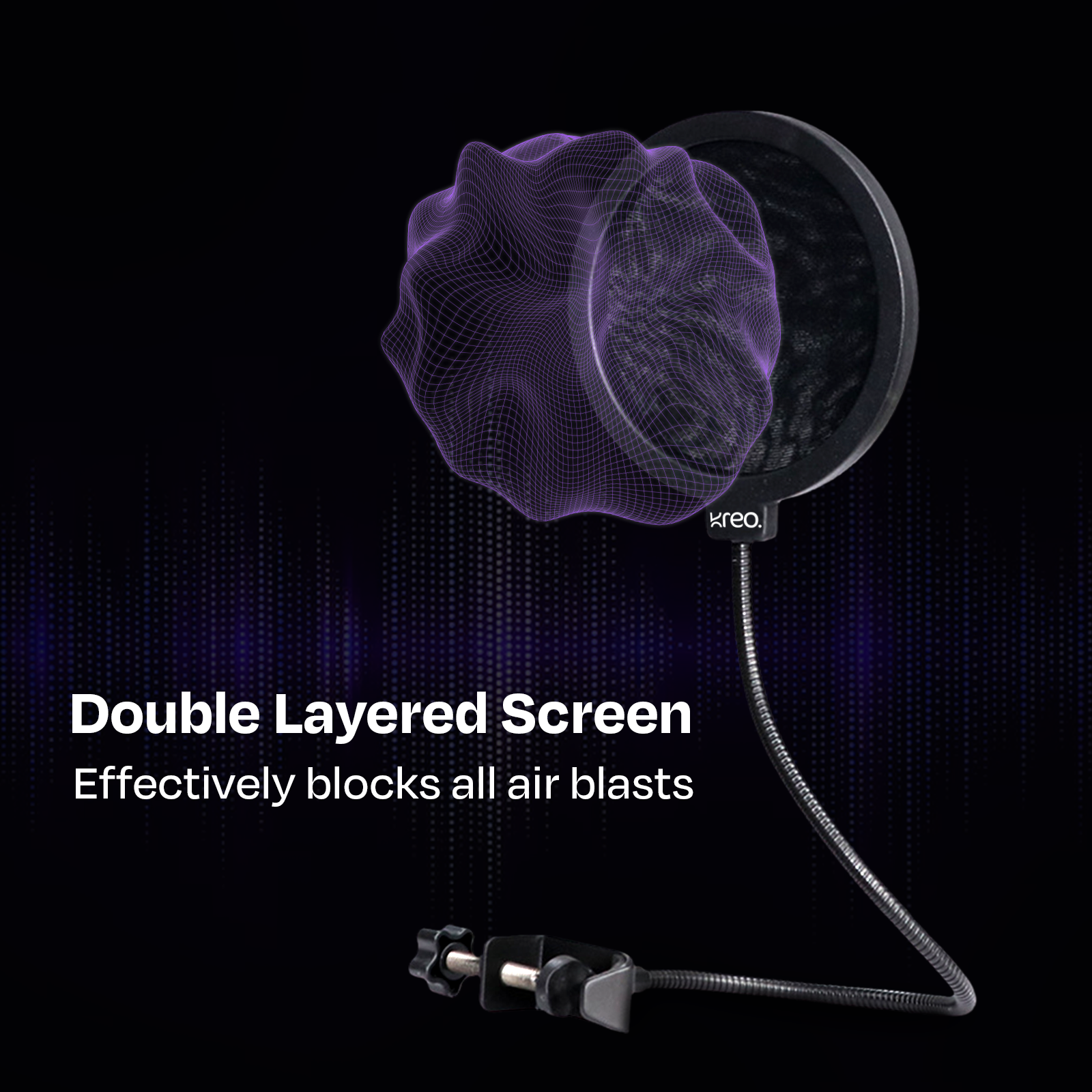 - Double Layered Pop Filter to effectively filter air blasts ensuring there is no popping and hissing sound for crystal clear audio.