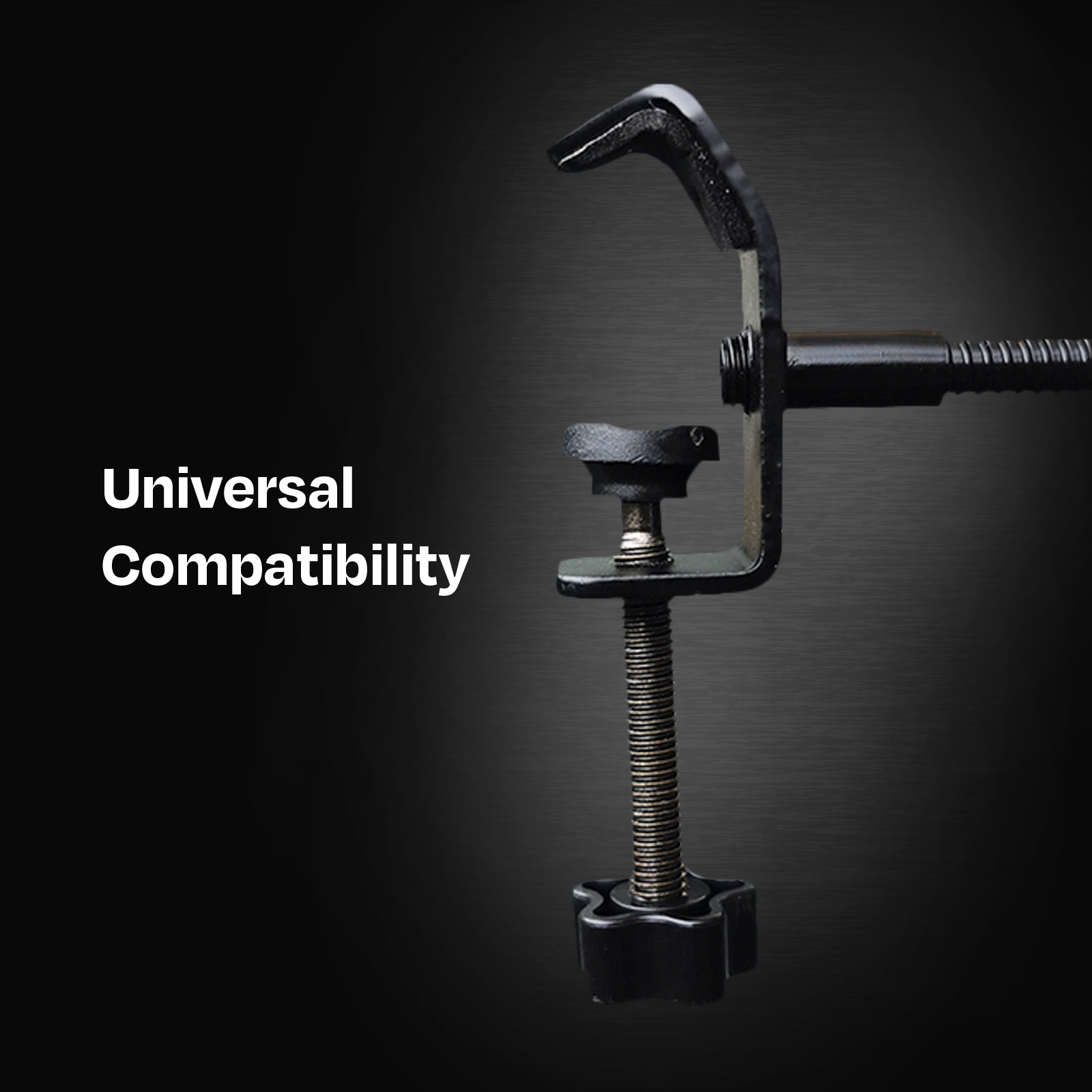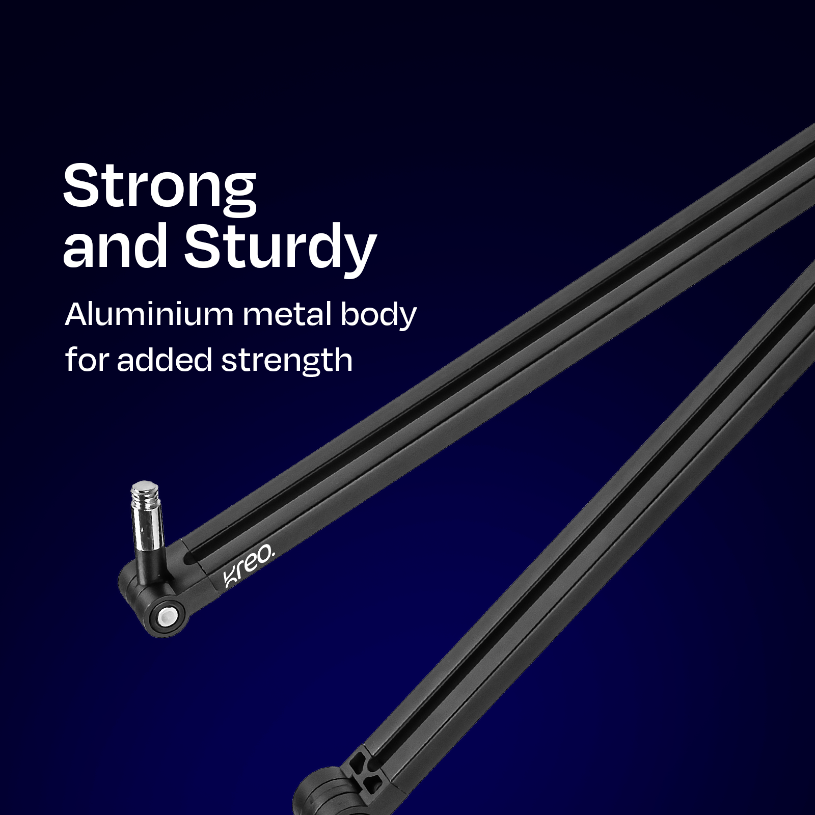 - Sturdy, Stable and Lightweight Boom Arm. Our Boom arm is made of high grade aluminum with a Sturdy C clamp for long usage. Works with mics of weight up to 2 kgs.Â