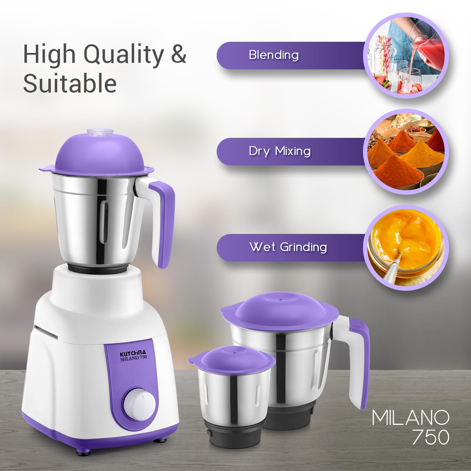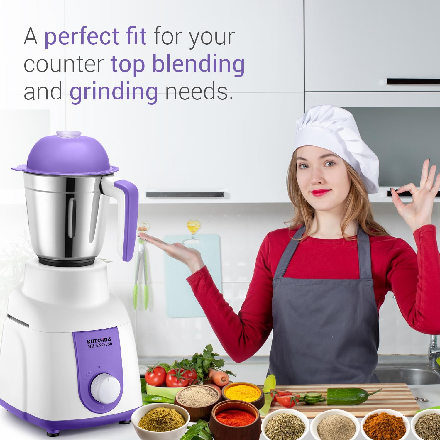 - SAFETY PROTECTION : Milano 750 mixer-grinder features overload protection function for safety. Comes with an anti-skid base for stability. Well ventilated body for fast cooling while heavy usage.