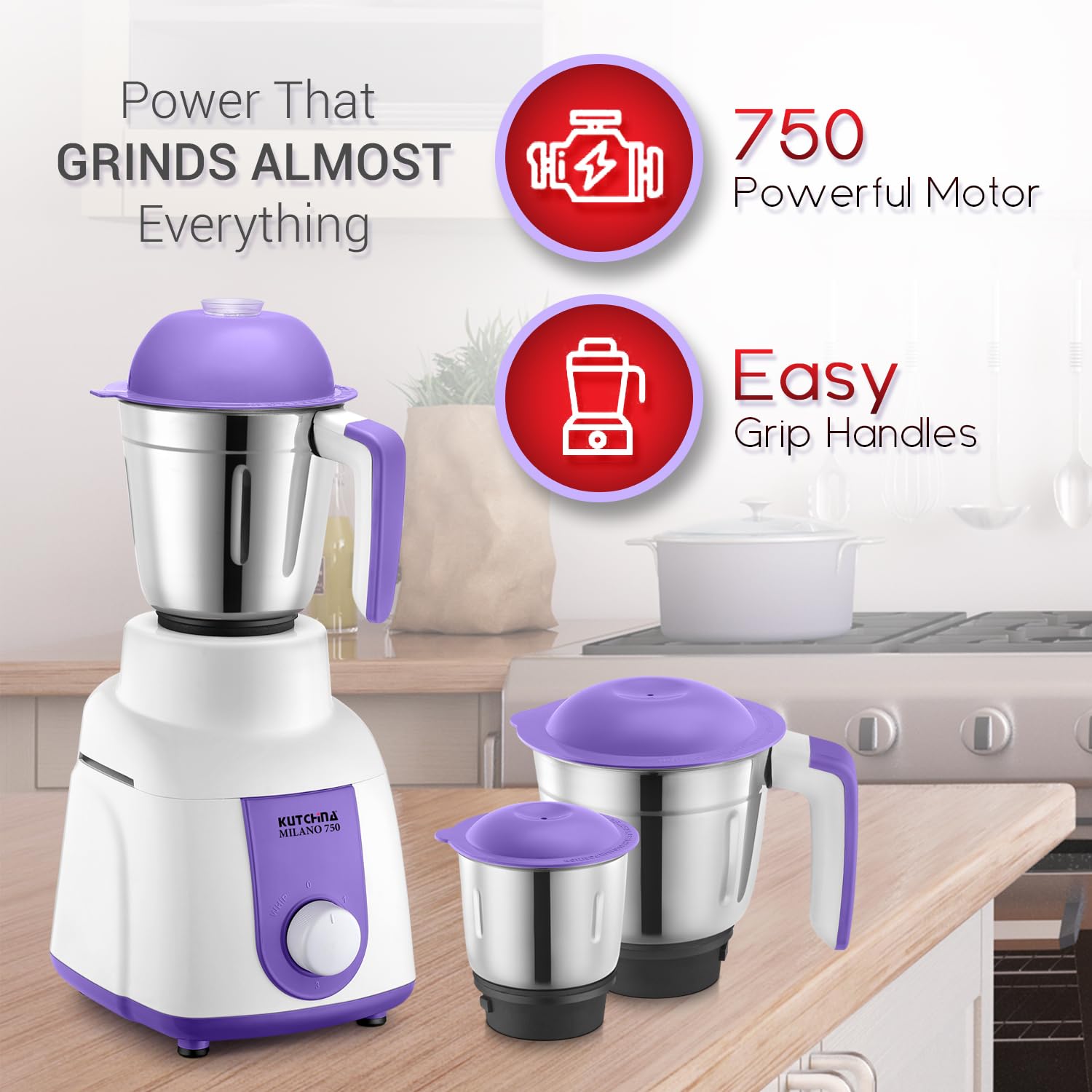 - POWERFUL MOTOR : The Milano 750 mixer grinder, driven by a potent 750-watt Hygrade Motor with high RPM, delivers robust performance, effortlessly handling various grinding and blending tasks in the kitchen.