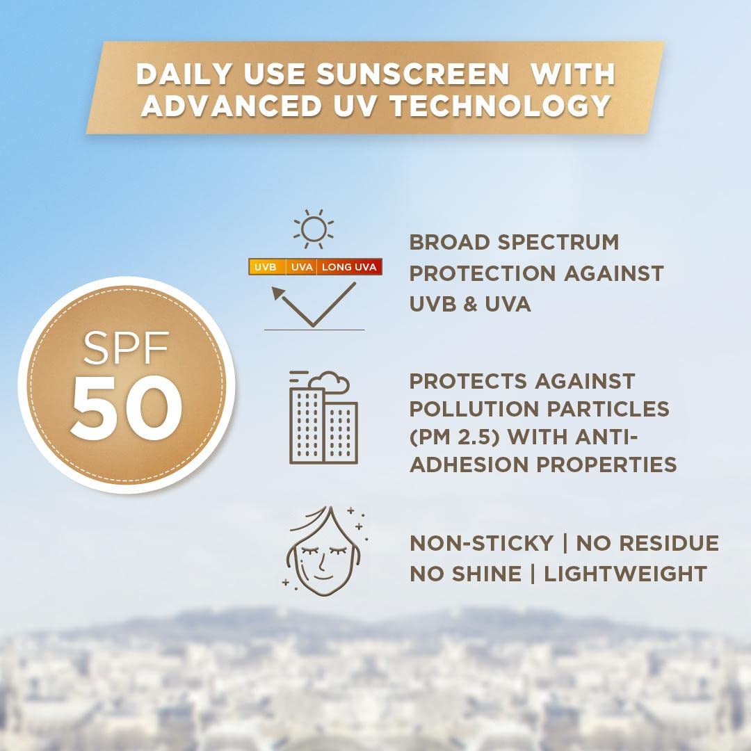 - Sunscreen with a powerful combination of SPF 50+ PA++++ broad-spectrum to protect skin from harmful sun rays