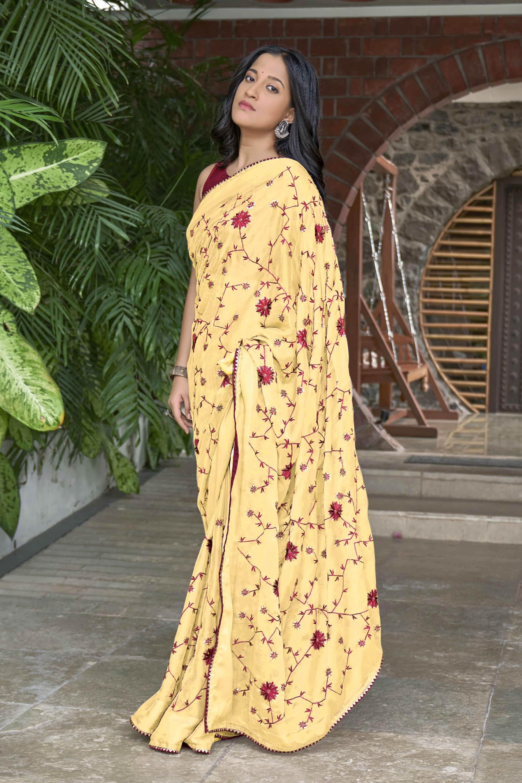 - Saree Fabric: Poly Georgette , Blouse Fabric : Dhupion Silk