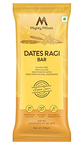 Mighty Millets® Dates Ragi Bars, Dates Ragi Bar for Adult and Kids 50grams Each (Dates Ragi Bar, Vegan and Gluten Free Bars, Jaggery, Flax Seeds, Muskmelon Seeds, etc) | Pack of 10