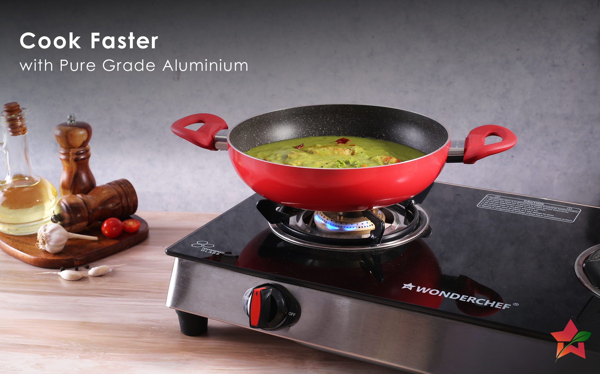 PFOA-free. - Pure grade aluminium for faster cooking and even heat distribution