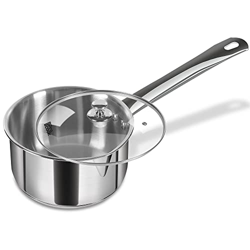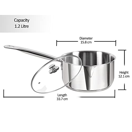Details: Introducing Milton Pro Cook Stainless Steel Sandwich Bottom Sauce Pan with Glass Lid. Encapsulated stainless steel base with thick aluminium core inside for even distribution of heat and faster cooking compared to normal stainless steel cookware. Sandwich Bottom sauce pan is suitable for making soups, sauce, tea, boiling milk, boiling veggies, cooking grains, and much more. Superior hygienic stainless steel Sauce Pan having glossy mirror finish outside and matt finish inside for rich premium feeling. Firmly riveted stainless steel handle with two rivets for long lasting usage. The hole at the end of the saucepan handle can be used to hang the pan in the kitchen shelf. A saucepan is a multi-functional and essential kitchen accessory for day-to-day cooking. Toughened glass lid with air event allows you to see the beverage while cooking ,air vent allows excess steam to release while cooking. Specially designed easy-pour spout for pouring your favourite beverage to your mug or bowl. It is Dishwasher safe pan for ease of cleaning and maintaining your pan. Thick induction base which provides flexibility of using the pan on gas stove, induction, hot plate and also evenly heats your beverage. 2 years manufacturing defect warranty on product.