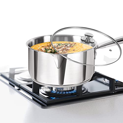 - Encapsulated stainless steel base with thick aluminium core inside for even distribution of heat and faster cooking compared to normal stainless steel cookware. Sandwich Bottom sauce pan is suitable for making soups, sauce, tea, boiling milk, boiling veggies, cooking grains, and much more.
