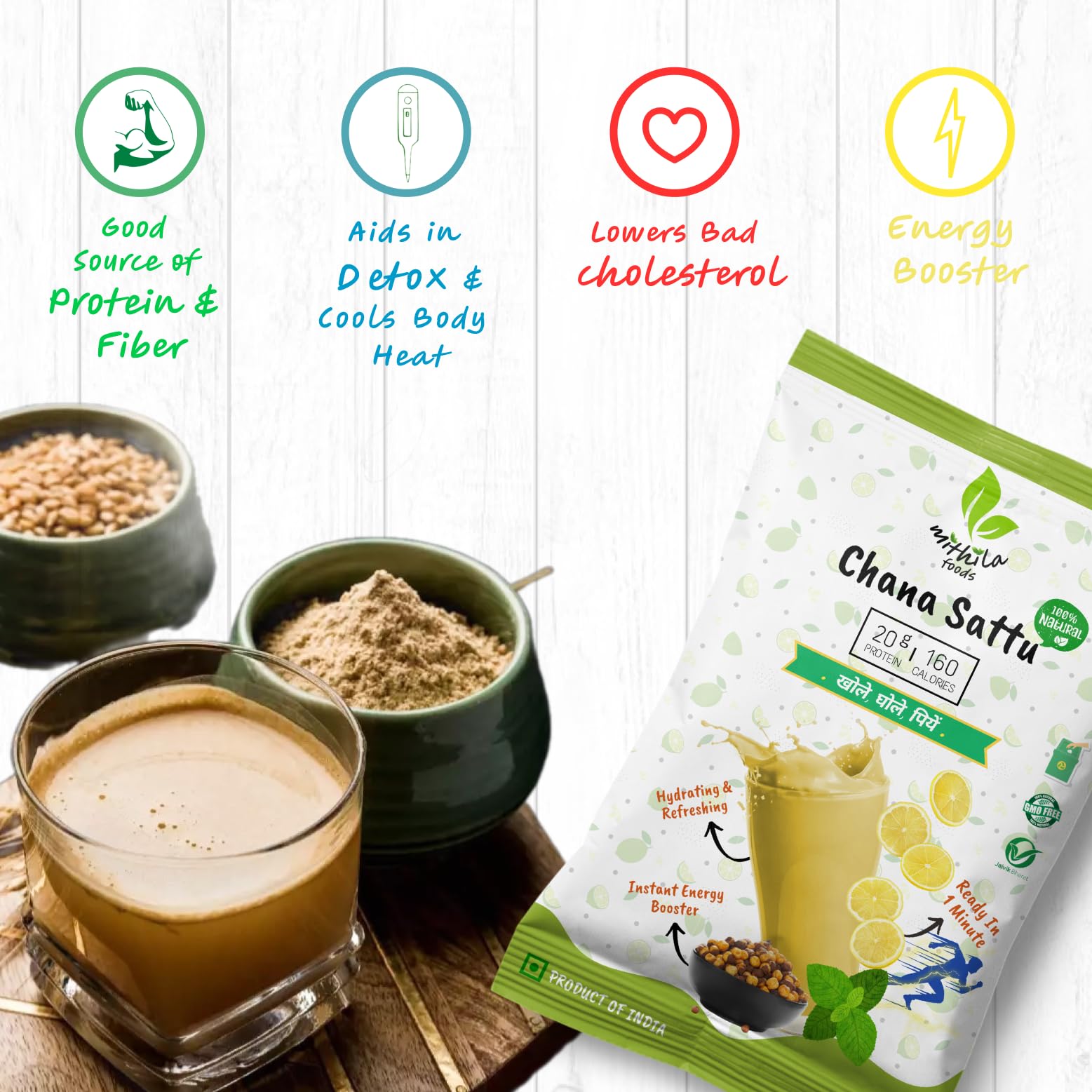 - 🍲 Versatile & Easy to Use: Whether as a refreshing drink, a savory paratha stuffing, or a base for laddoos, Mithila Foods Chana Sattu adds a delicious twist to every recipe.