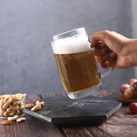 The clear glass beer mug comes with a detailed finish that gives it a crystal and beautiful look. It’s easy-to-hold handle makes lifting the mug an easy task!