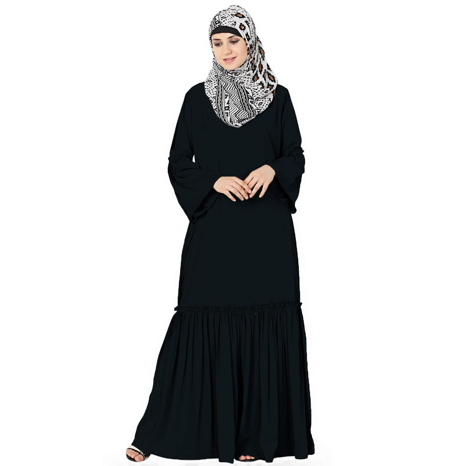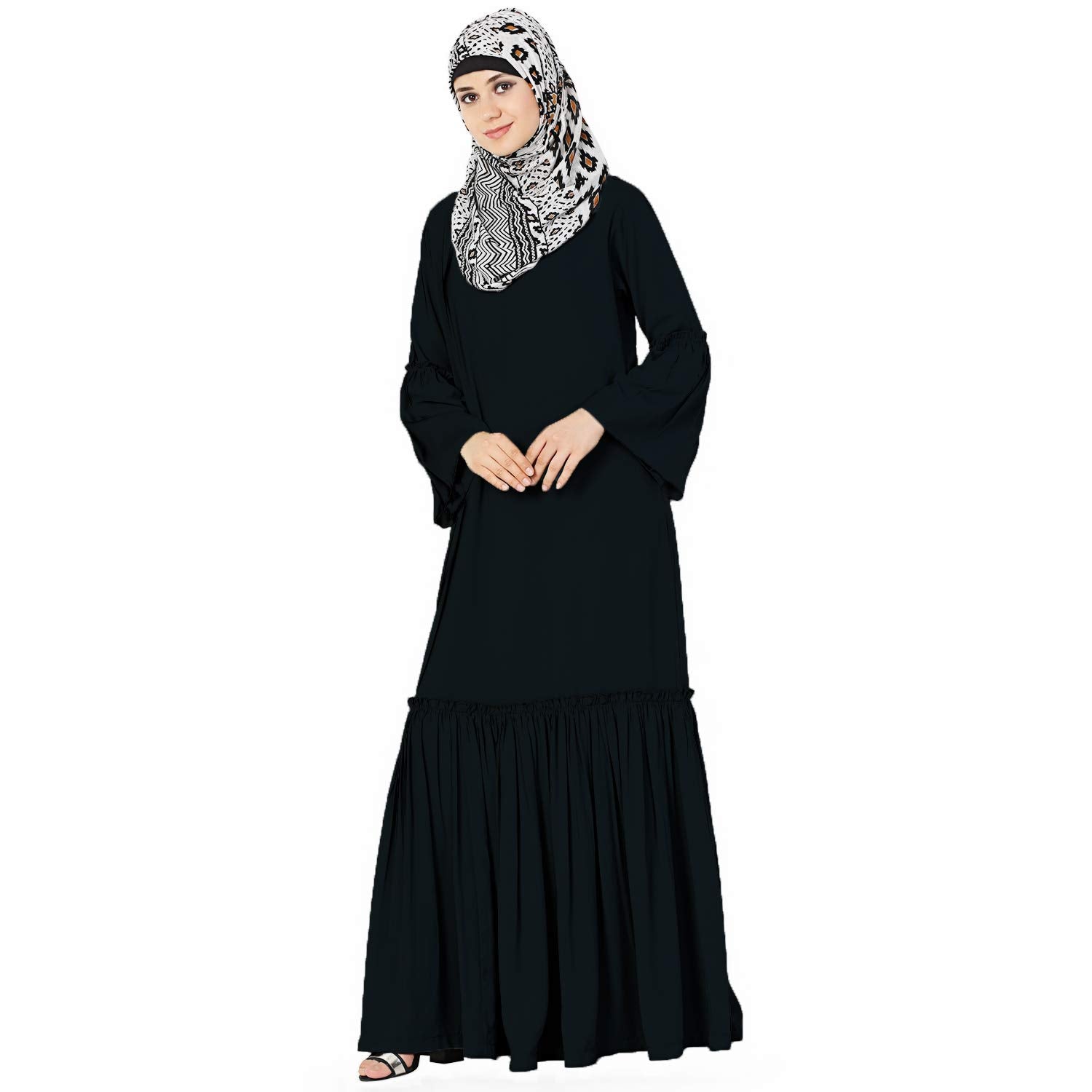 Momin Libas abaya, made of Polyester. Gathers on shoulder, Made of Polyester fabric. Easy to Wash (Cold wash). Bright colors that do not bleed.