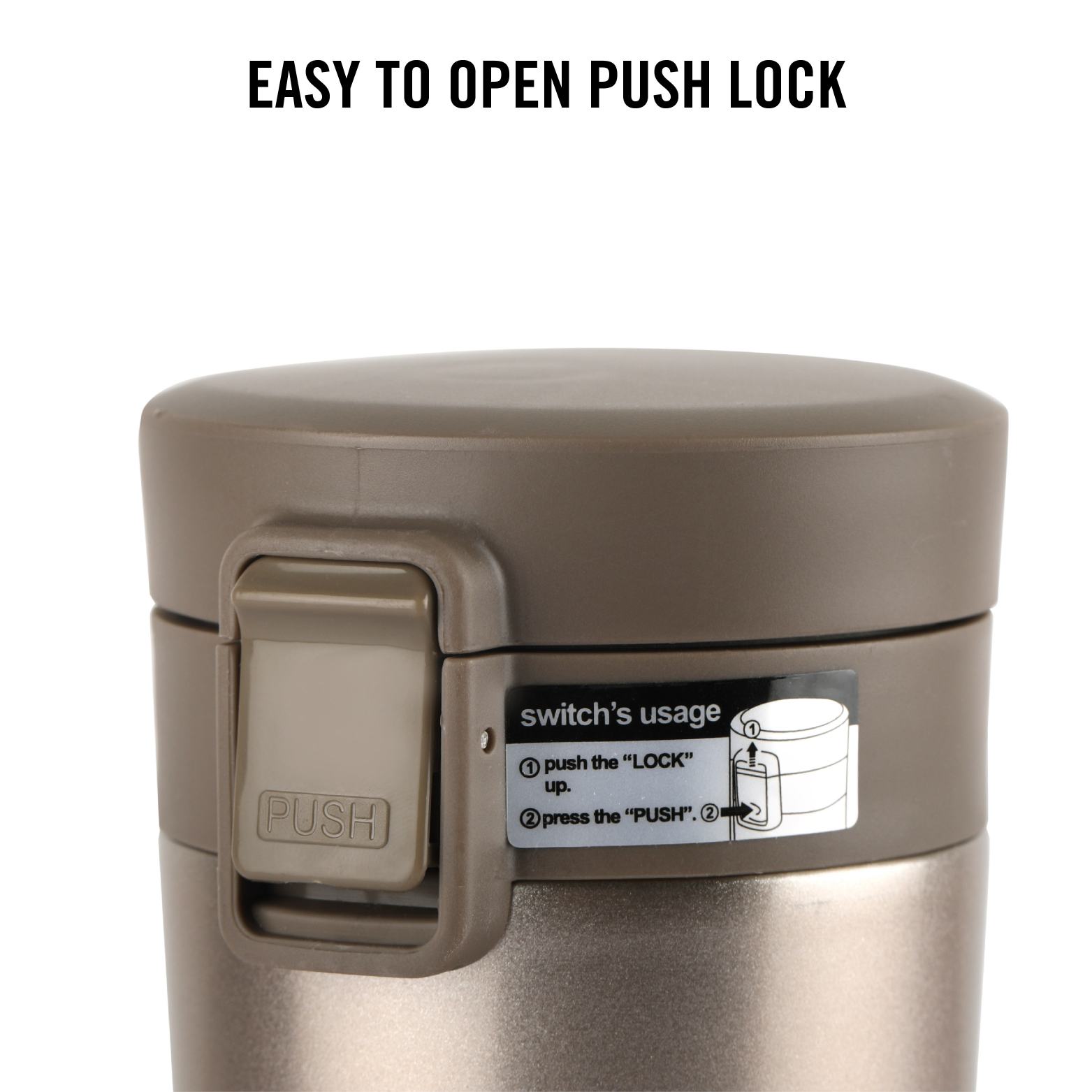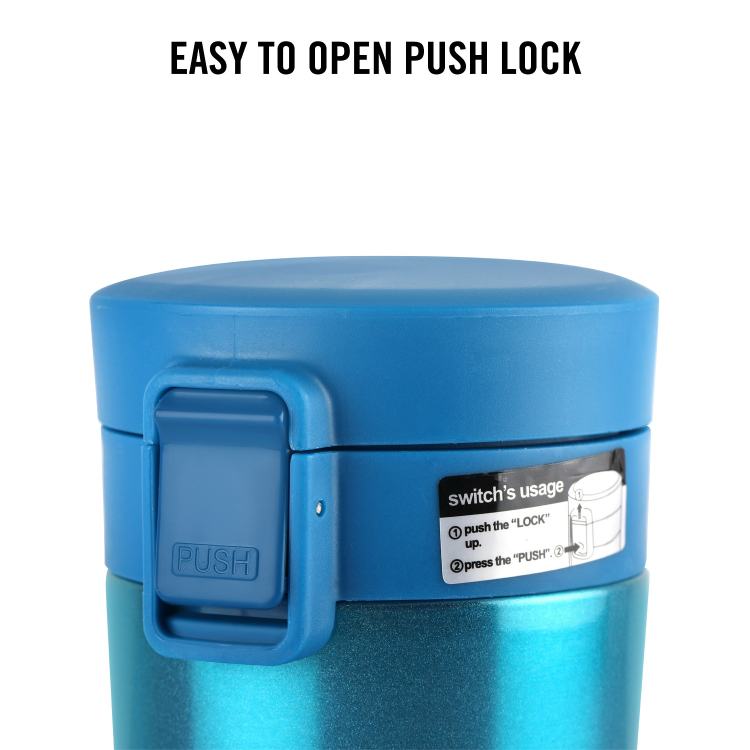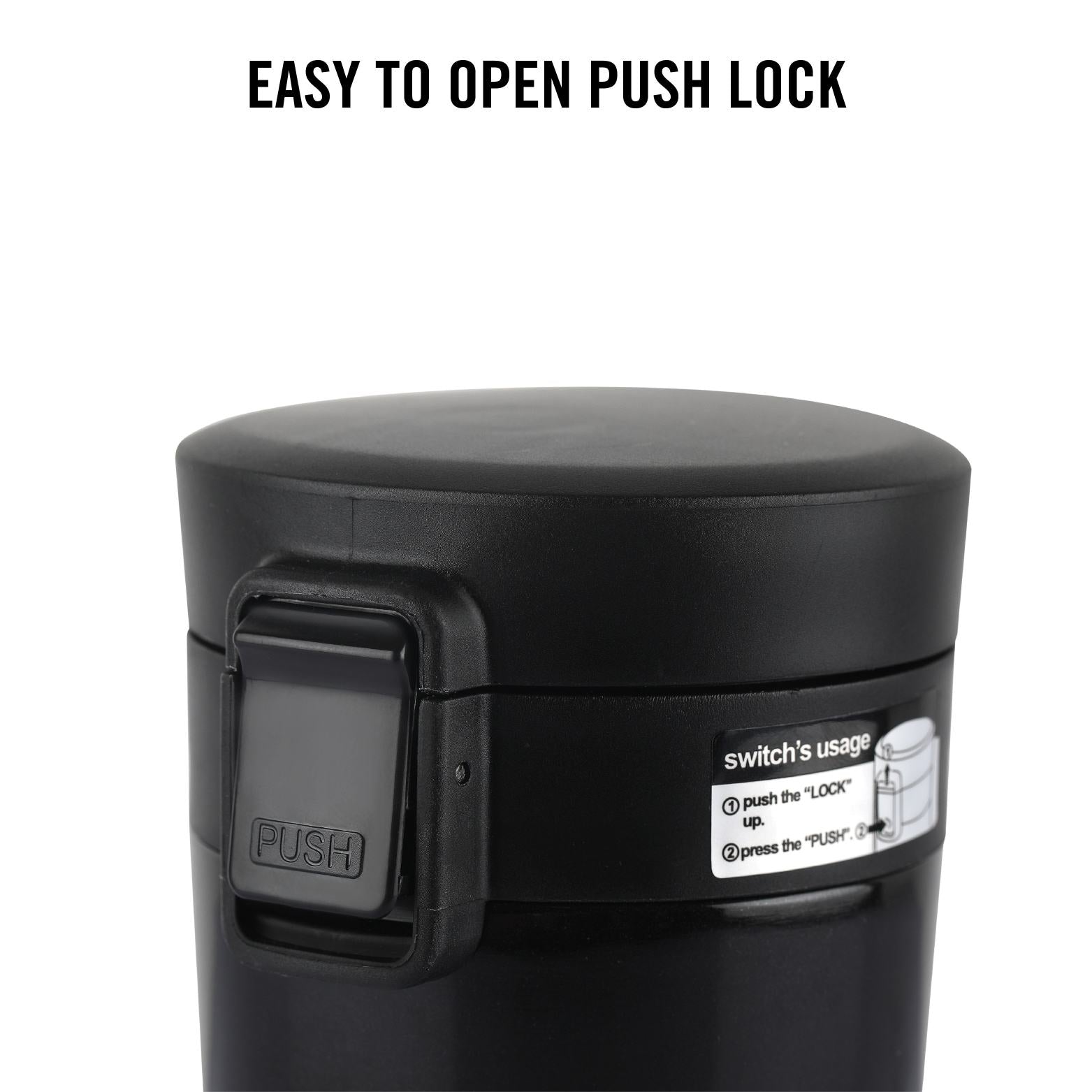 - Flip Lid: Our Mug is equipped with a flip lid, which is convenient for drinking or sipping from. This mug features a one touch button and a lock system to easily access your beverages without having any spillage.