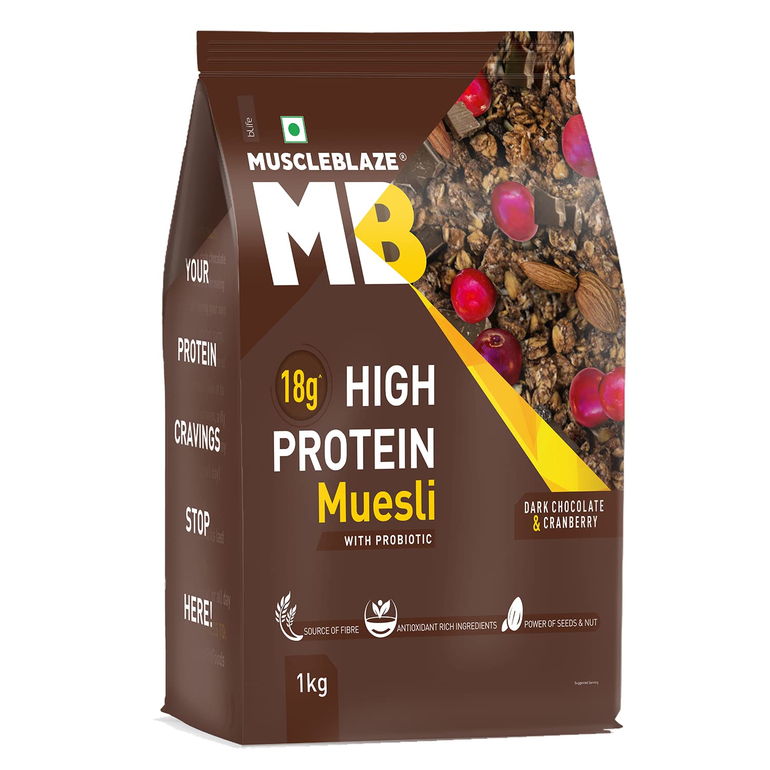 MuscleBlaze High Protein Muesli, Dark Chocolate & Cranberry, 1 kg