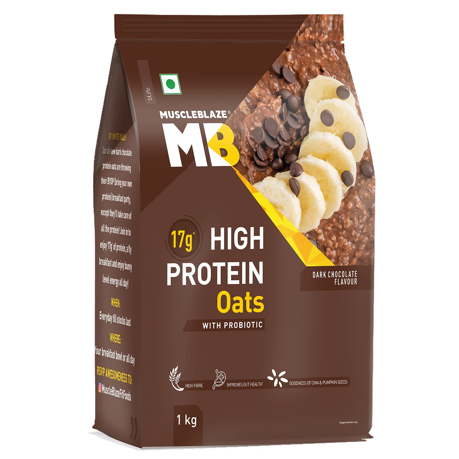 MuscleBlaze High Protein Oats – Dark Chocolate is a nutritious source of protein, providing 17g of protein with every serving. For optimal benefits, mix the oats with 250ml of skimmed milk to feel fuller longer. With over 17g of protein, it’s the perfect way to support a healthy lifestyle.