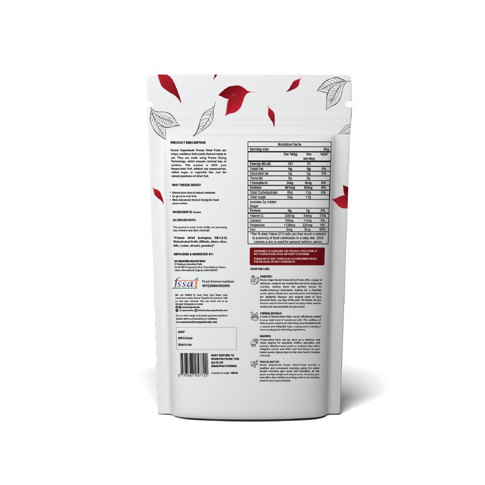 - DAILY FRUIT DOSE: With Nectar Superfoods Freeze Dried products it gets easy to consume complete daily recommended dosage of fruits in our diet. With No Hassle of cleaning, sorting, peeling or cutting of fruits the freeze dried options becomes very convenient