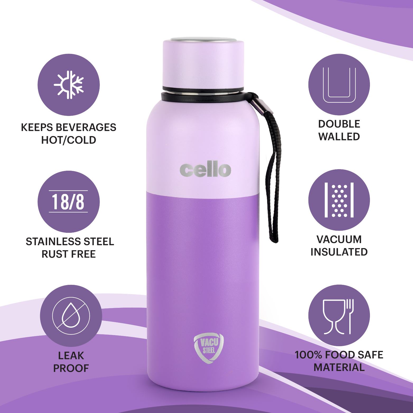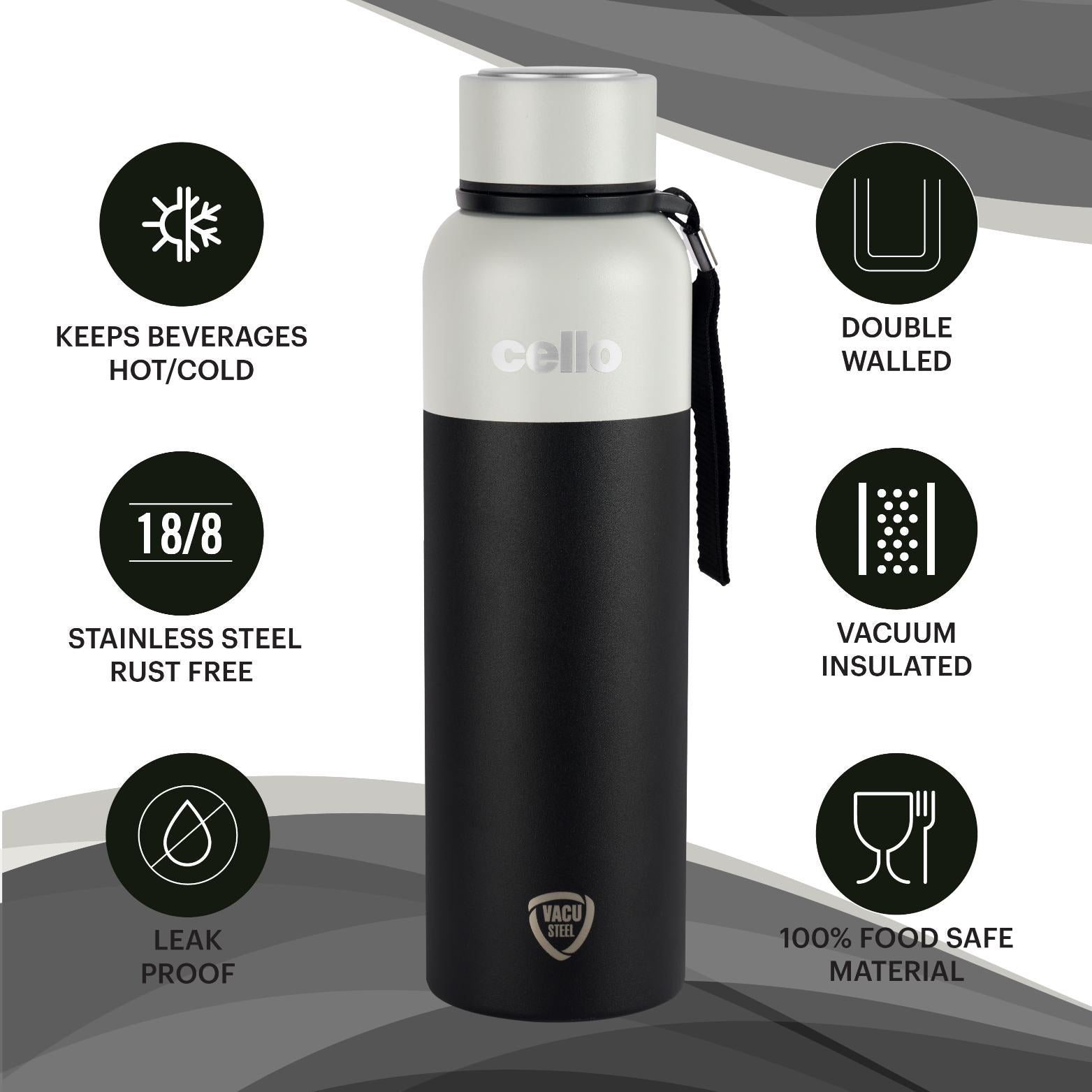 - Vacusteel keeps beverages at the ideal temperature