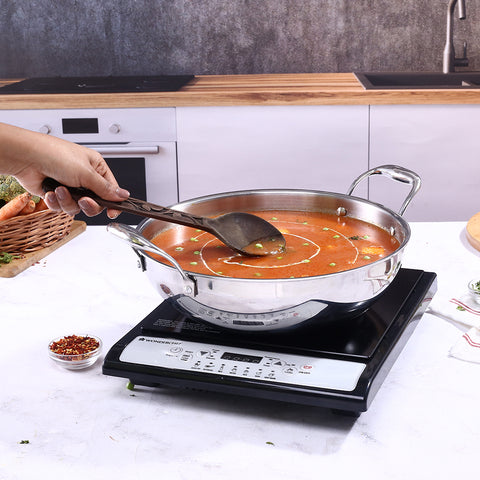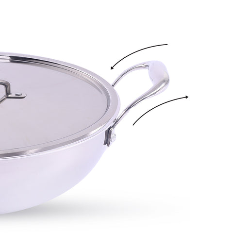 - Perfect Cooking Every Time:Â With its 2.6mm thickness and tri-ply walls, this kadhai ensures your food is cooked to perfection without burning, while the even heat distribution guarantees consistent results every time.