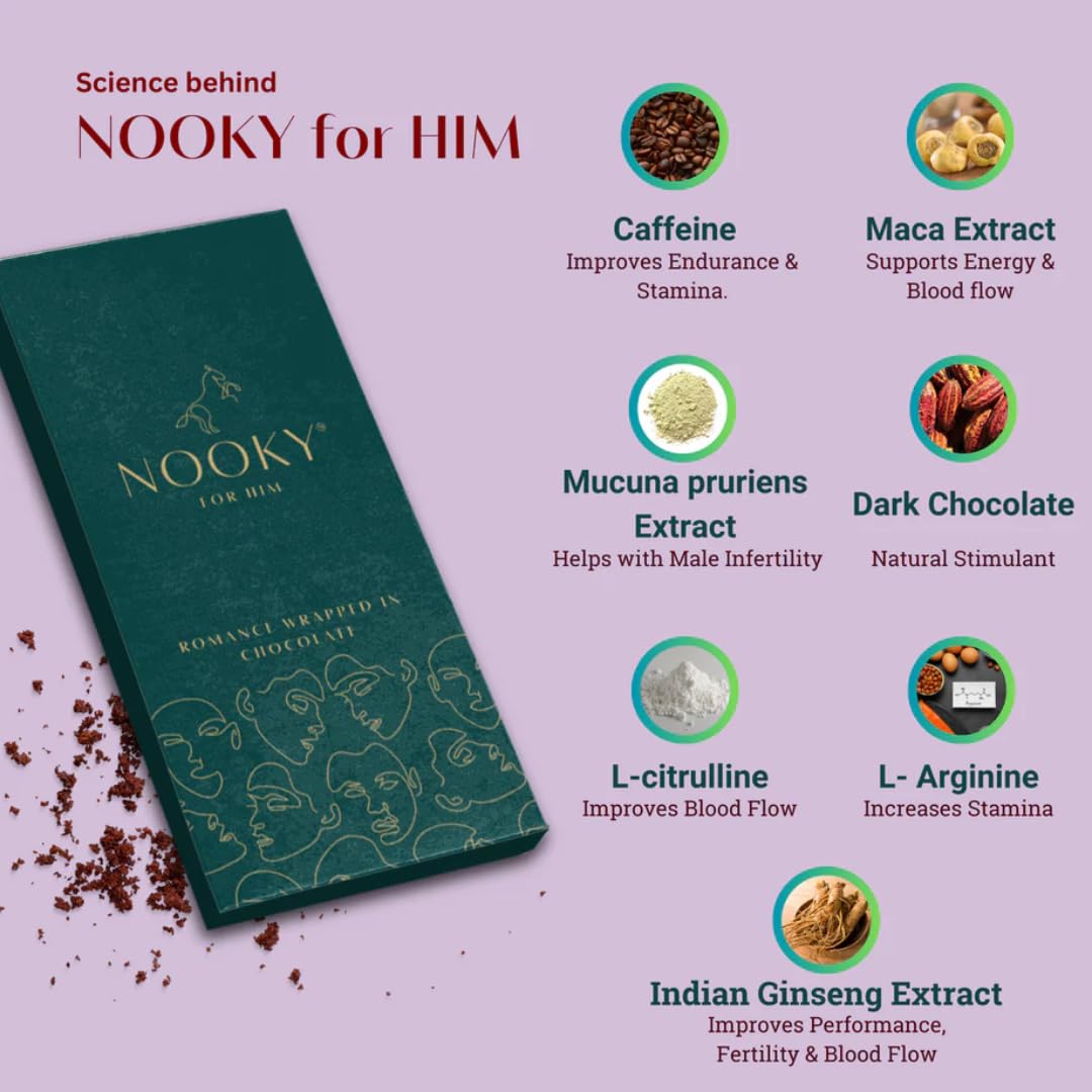 - Elevate Your Moments Together: NOOKY Chocolate for him is crafted to offer a delightful experience with your partner. Infused with rich flavours, it adds a special touch to your evenings together.