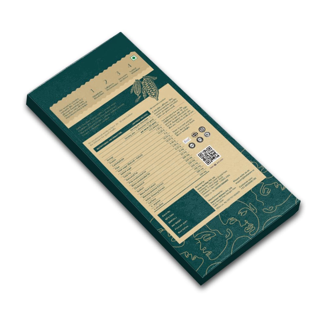 - Certified Quality and Trusted Ingredients: NOOKY Chocolate for him is produced in a certified facility in Delhi, adhering to strict quality control standards. Made with 45% cocoa and enriched with five carefully sourced herbs from trusted suppliers in India, each piece guarantees quality and safety.