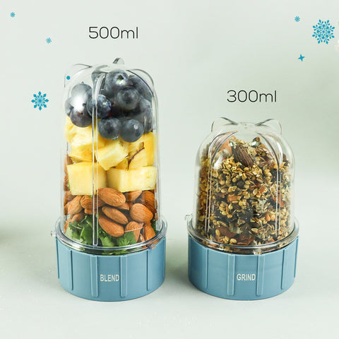 - Specialised Functions: The tall jar (500ml) comes with 4-wing blade for mixing-blending and the short jar (300ml) with 2-wing flat blade for grinding to make all kinds of chutneys, shakes, smoothies and masalas. Two useful lids – for storing and sprinkling come with the product