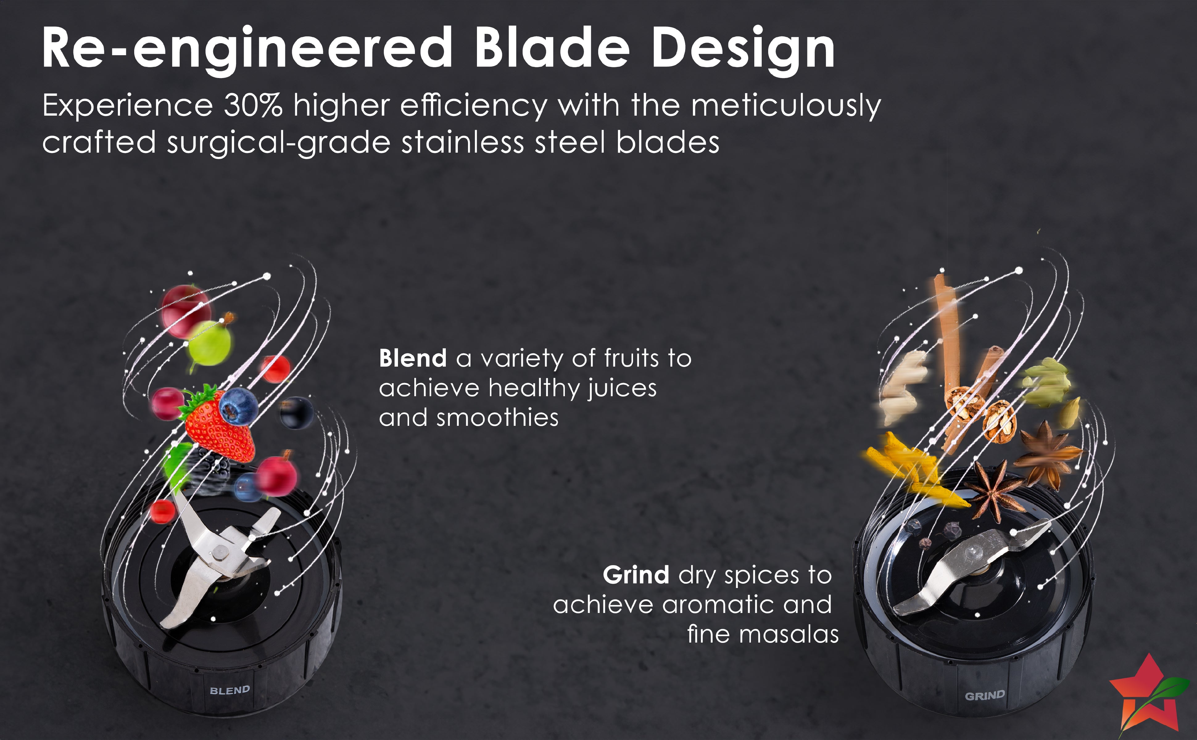 - Designed to Deliver: The unique cuboid shape, smart ventilation, strong suction feet, screw-type jars for zero leakage, and super-sharp stainless steel blades are designed to deliver the best performance for years.