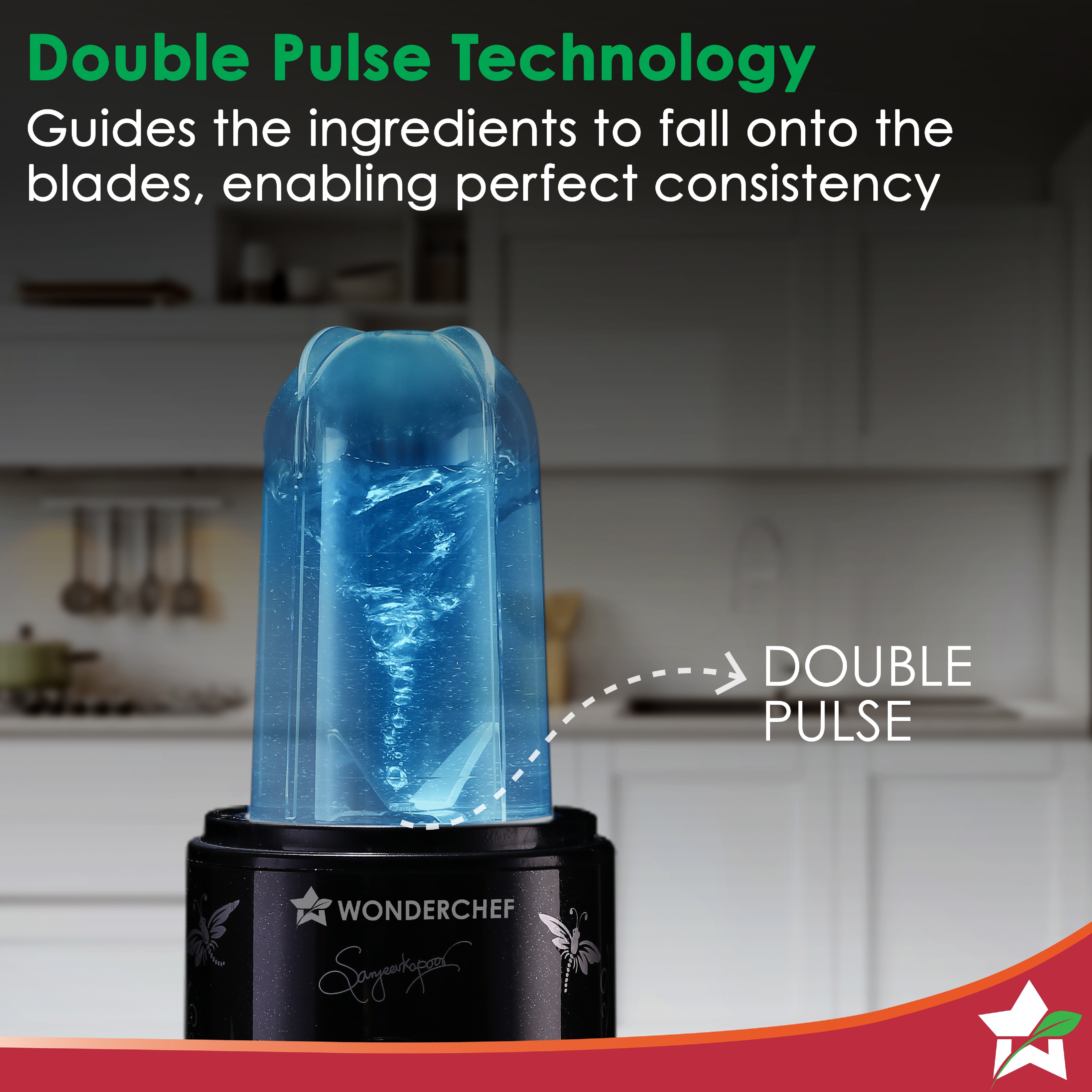 - Double Pulse Technology: Once the mixer starts, it stops twice for 2 seconds after every 4 seconds. This feature of very sophisticated blenders allows the contents to settle down and fall back on the blades for perfect blending rather than sticking on the sides.